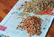 참깨 3단을 베어 묶어 10일 후에 오늘 털었더니 두어사발 정도 나오는군요.