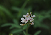 꽃은 7월 초순~9월 중순에 피고 액생 하는 짧은 취산꽃차례 또는 원뿔모양꽃차례에 달리며 화경은 길이 5~12cm이고 꽃은 지름 13~25mm이다. 꽃받침조각은 4개로서 피침상 거꿀달걀형이며 길이 7~10mm로서 흰색이고 표면에 잔털이 있으며 수술은 꽃받침과 길이가 거의 같다. 꽃잎은 4장으로 십자 모양 꽃부리이고, 암술과 수술은 각각 여러개이다.
