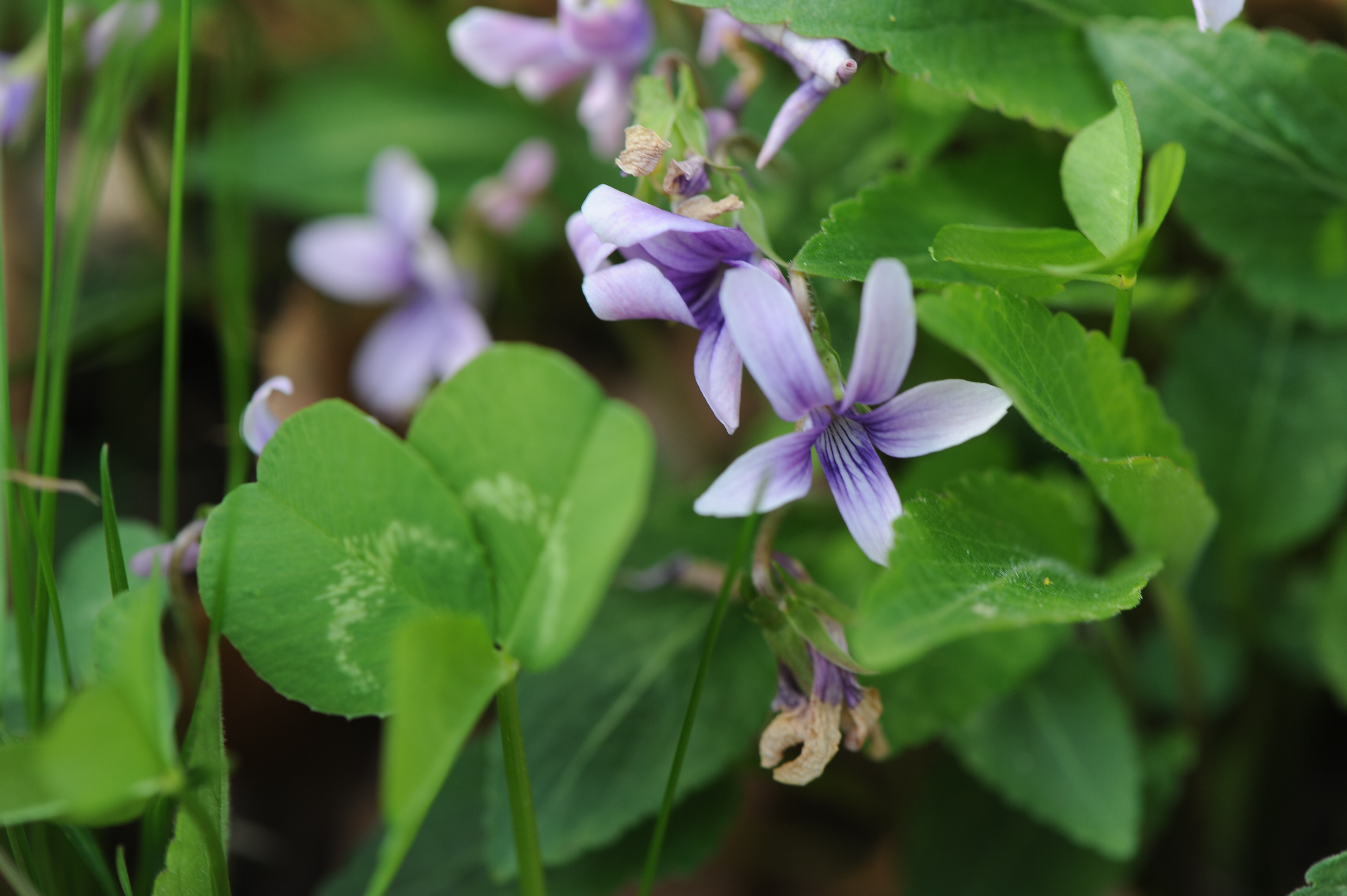 청주 양성산 등산로 길가에서 자람을 담았는데 잎은 난상 긴타원형이고 꽃잎은 흰색바탕에 연한 보라색이고 짙은 보라색 맥이 있어 서울제비꽃으로 동정하여 올려보는데......?