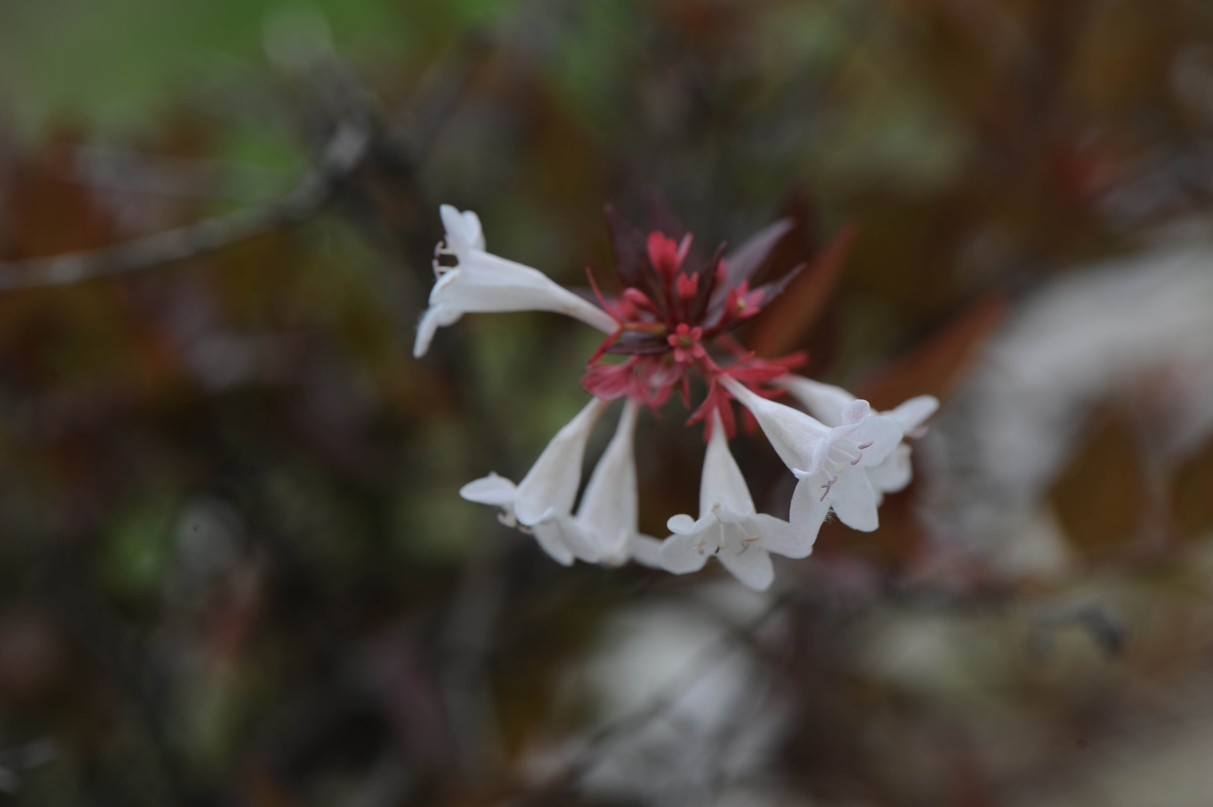 ° 주걱댕강나무 - 꽃받침이 5개, 암 수술이 꽃잎 밖으로 나오지 않는다. 꽃잎 속이 주황색.