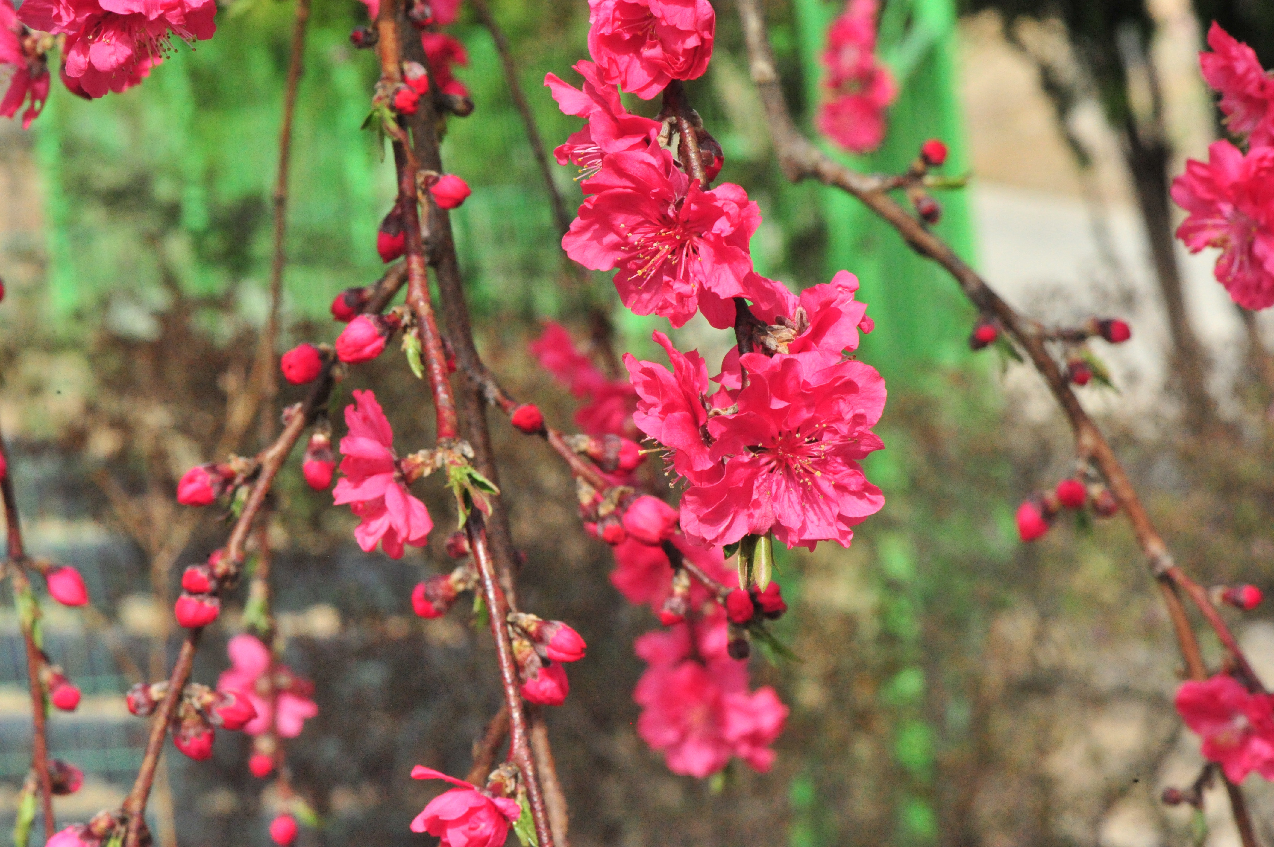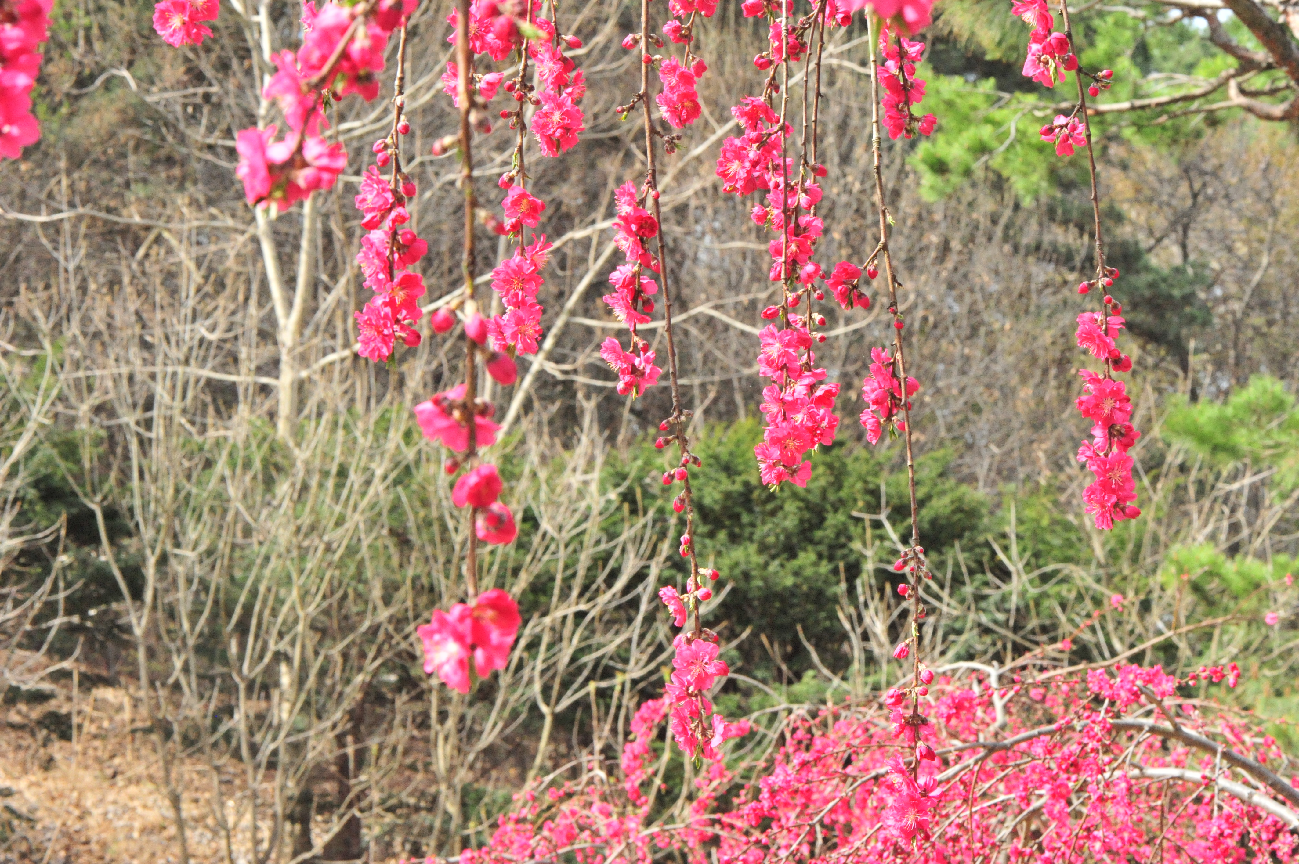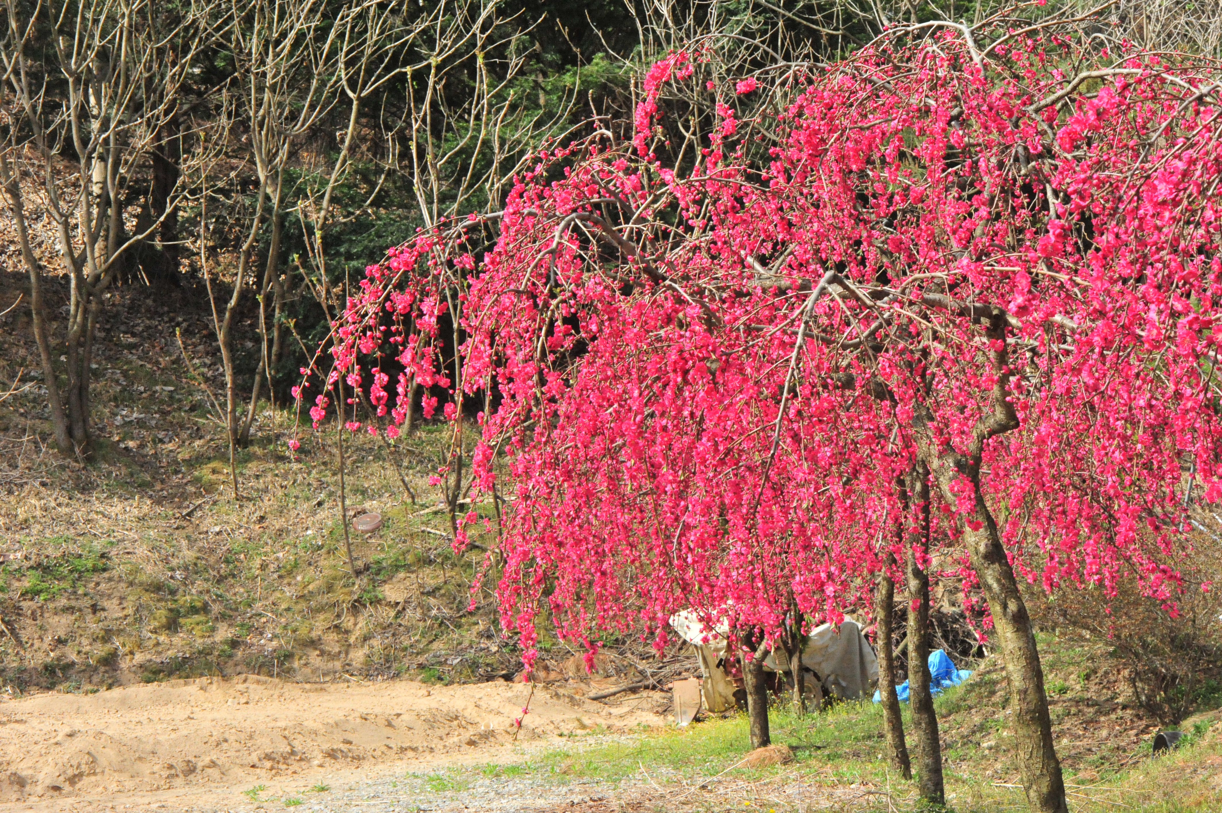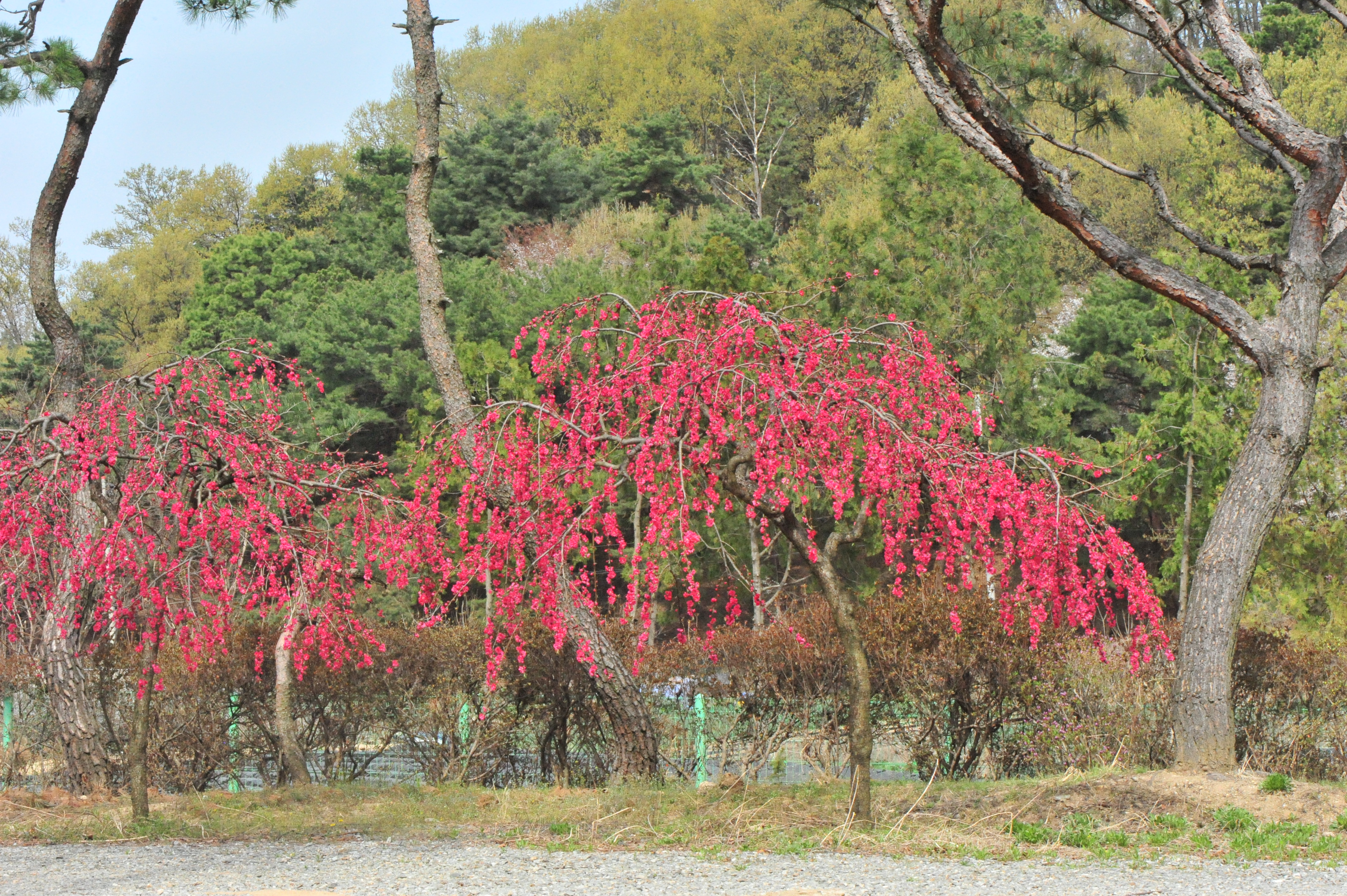 * 야산 길가 민가에 식재된 것을 담았는데 버드나무처럼 가지가 늘어져 있고 붉은색의 겹꽃이 탐스럽게 피어 시선을 끄는군요.