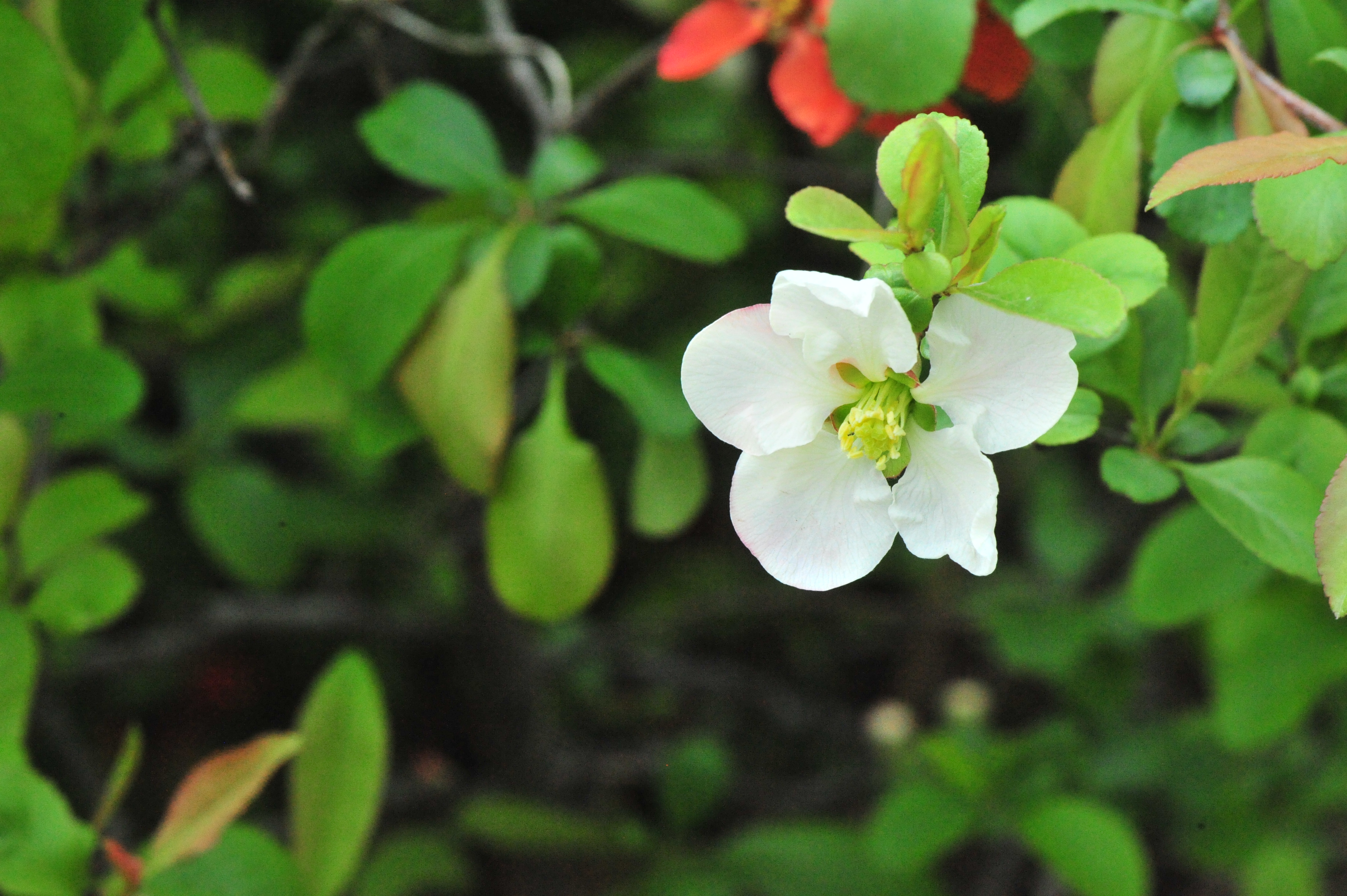 붉은색 꽃이 피는 명자나무는 많이 보이지만 흰색 꽃이 피는 명자나무는 드물더군요.