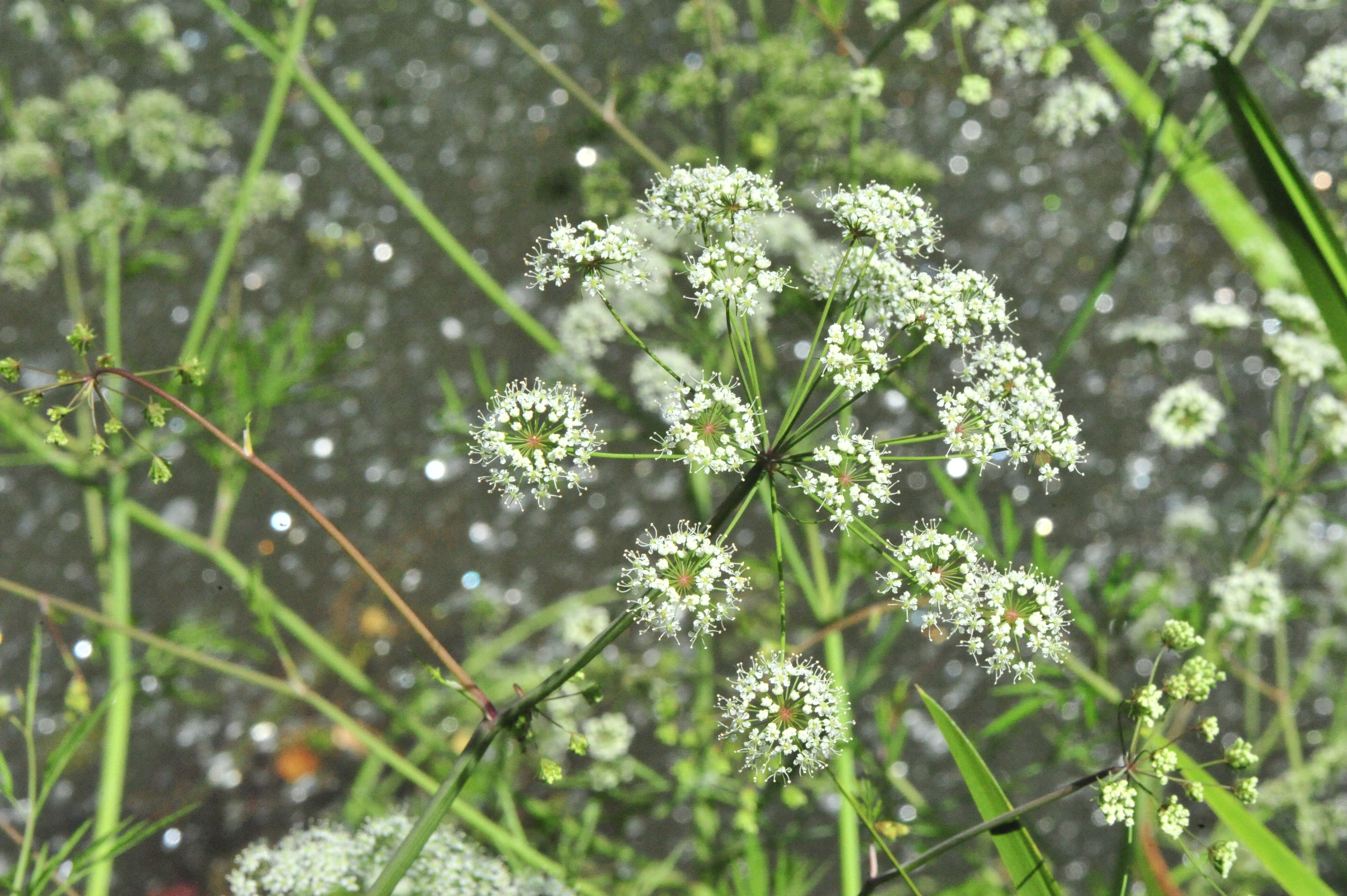 꽃은 7~8월에 피고 백색이며 겹우산모양꽃차례로서 소산경은 길이 3cm 정도로 윗부분과 한쪽에 털 같은 돌기가 있으며 10~20개이고 총포가 없으며 소산경은 긴 것은 길이 5mm 정도로서 선형인 소총포편보다 짧다.