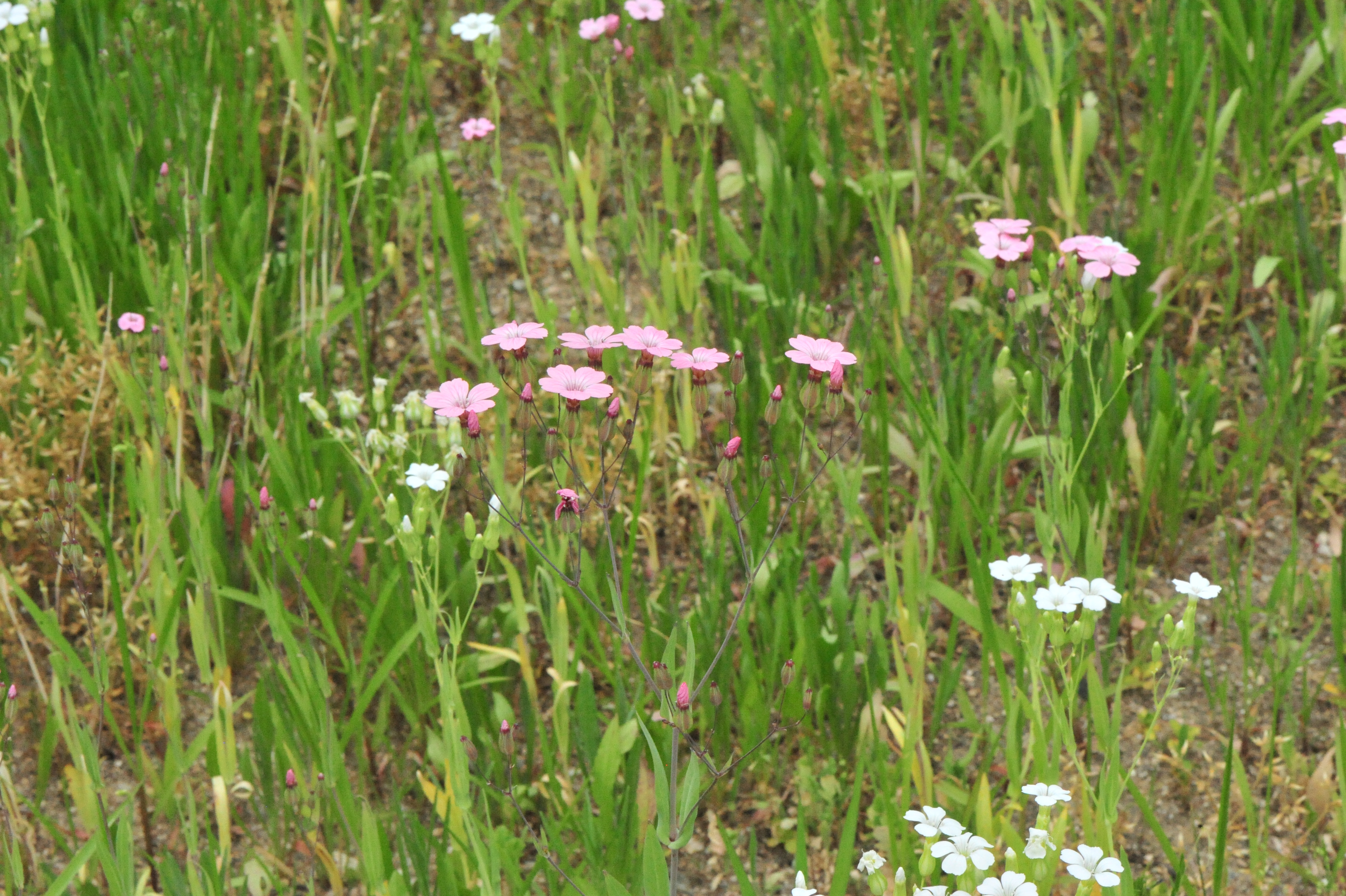 * 흰색꽃이 피는 비누풀과 분홍색 꽃피는 말뱅이나물은 꽃 모양이 비슷하고 같은 장소에 피어있군요.