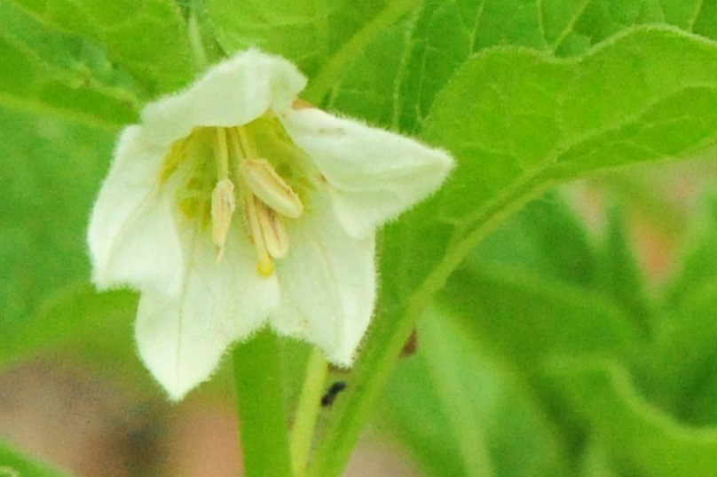 꽃은 6∼8월에 지름 1.5~2.0cm 정도의 연한 노란빛 흰색으로 피는데, 잎겨드랑이에서 나온 꽃자루 끝에 1송이씩 달린다. 꽃자루는 3∼4cm이고, 꽃받침은 짧은 통처럼 생겼으며 끝이 얕게 5개로 갈라지고 가장자리에 털이 있다. 꽃이 핀 후에 꽃받침은 자라서 주머니 모양으로 열매를 둘러싼다. 화관은 연한 노란색으로 지름이 1.5∼2cm이고 가장자리가 5갈래로 얕게 갈라지며 수평으로 퍼진다. 수술은 5개이고 암술은 1개가 있다.