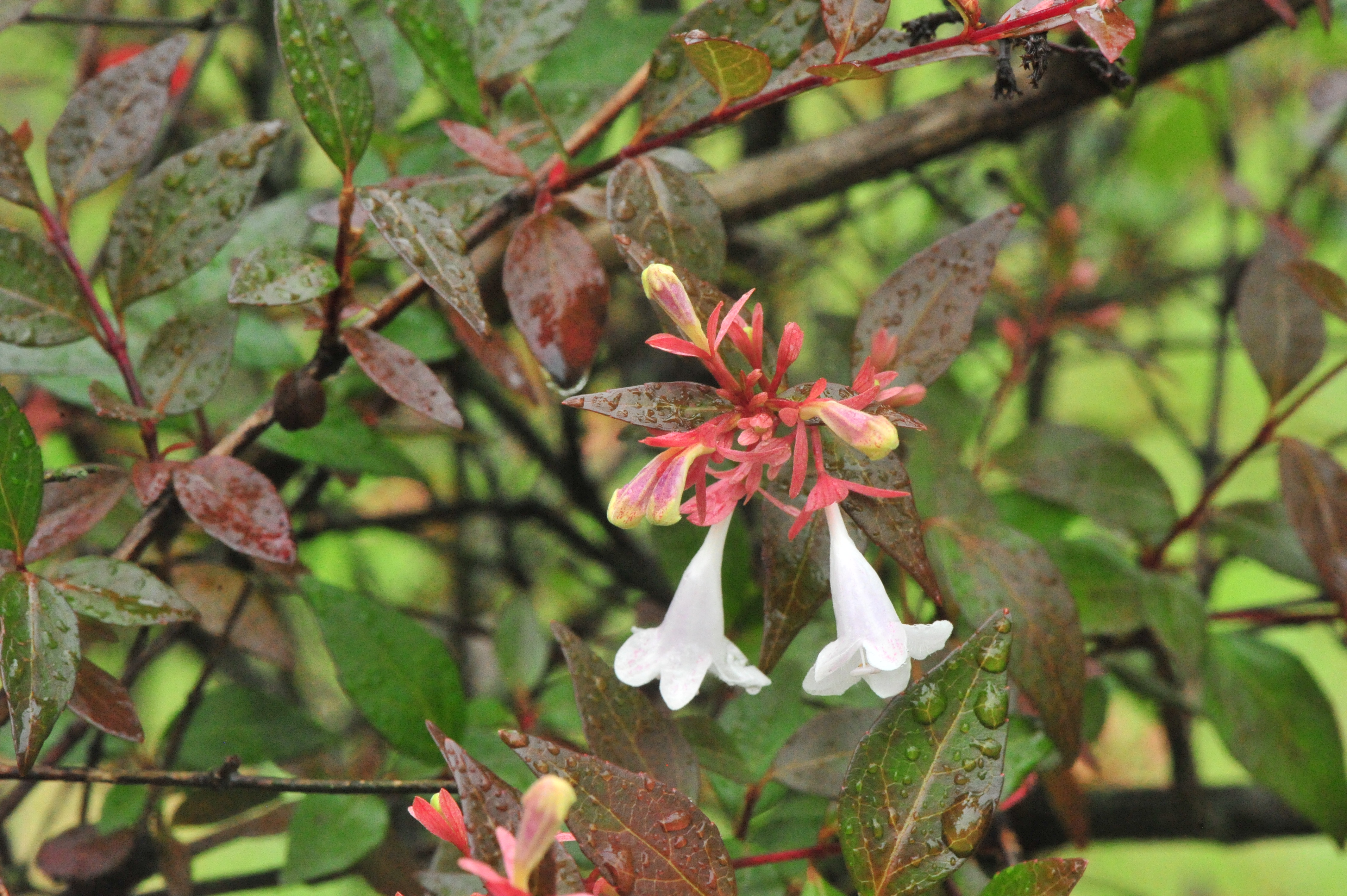 ° 털댕강나무 - 잎은 난 피침형이고 단모가 분포하며 가지는 규칙적으로 대생분지를 한다. 가지 끝에 두 송이 달린다.