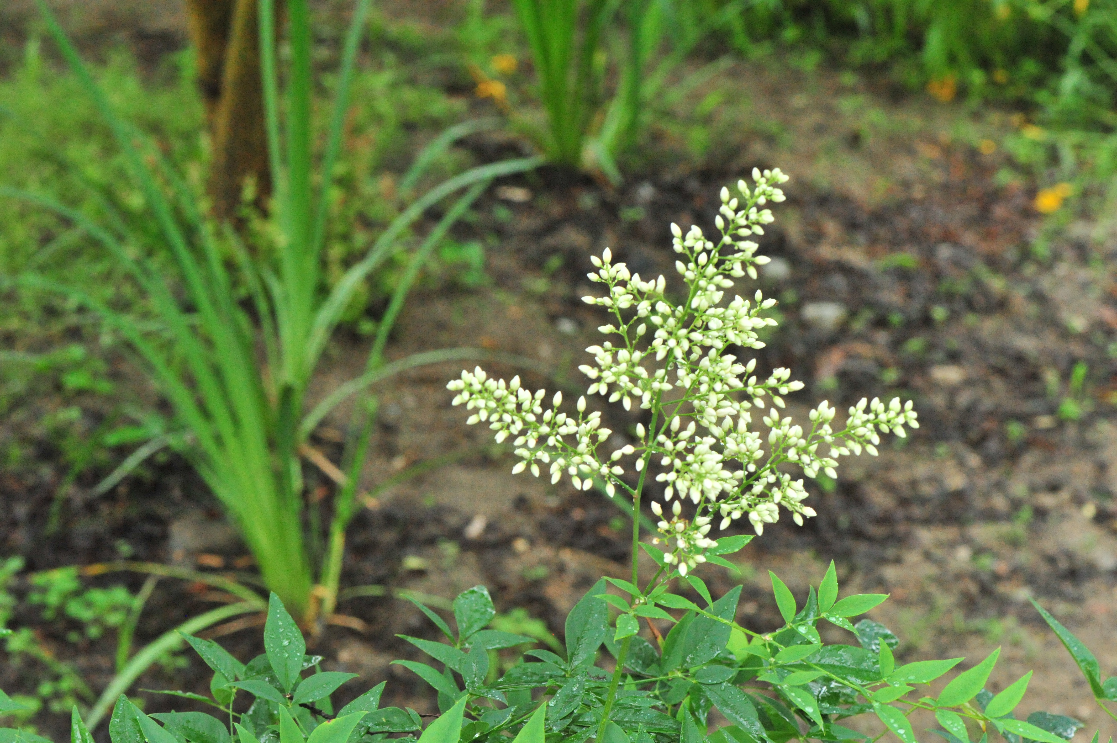 꽃은 양성화로 6~7월에 가지 끝에 흰색의 원추꽃차례로 달린다. 꽃잎은 6개, 수술 6개, 1개의 암술대가 있다.
