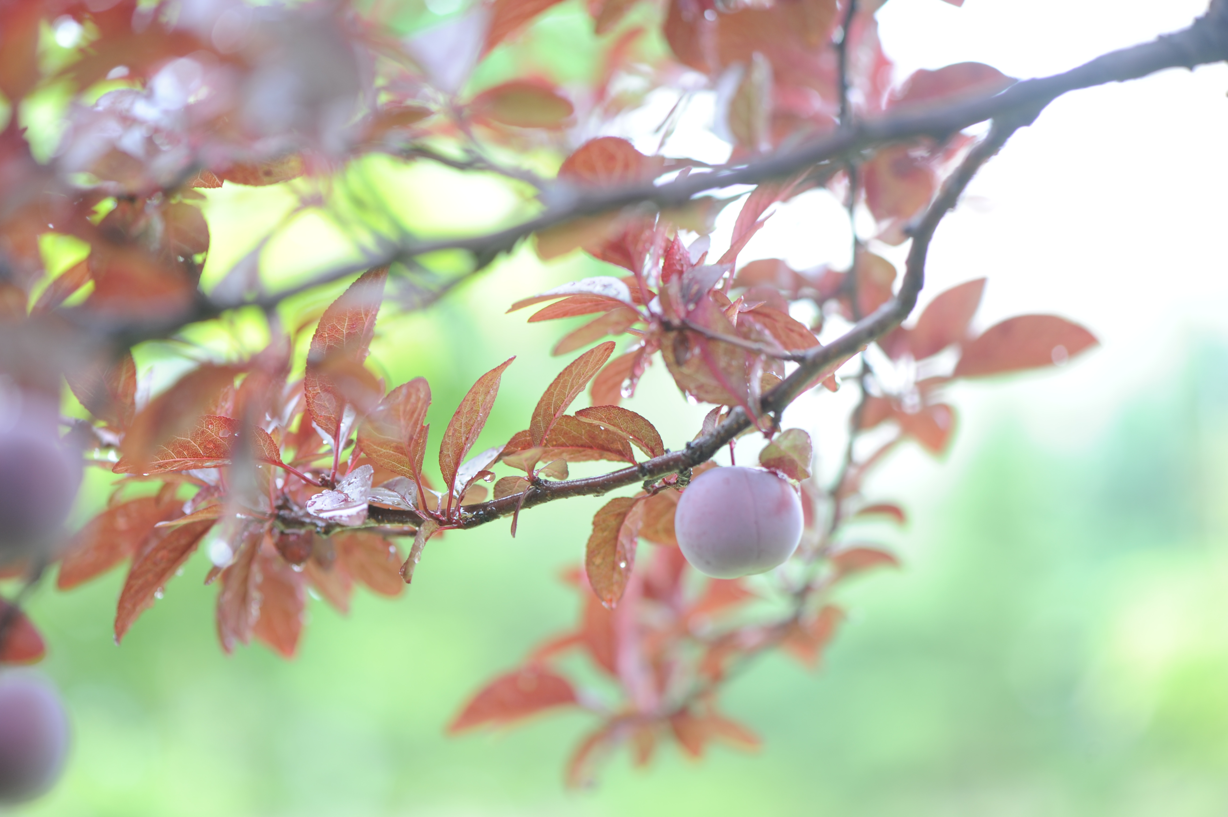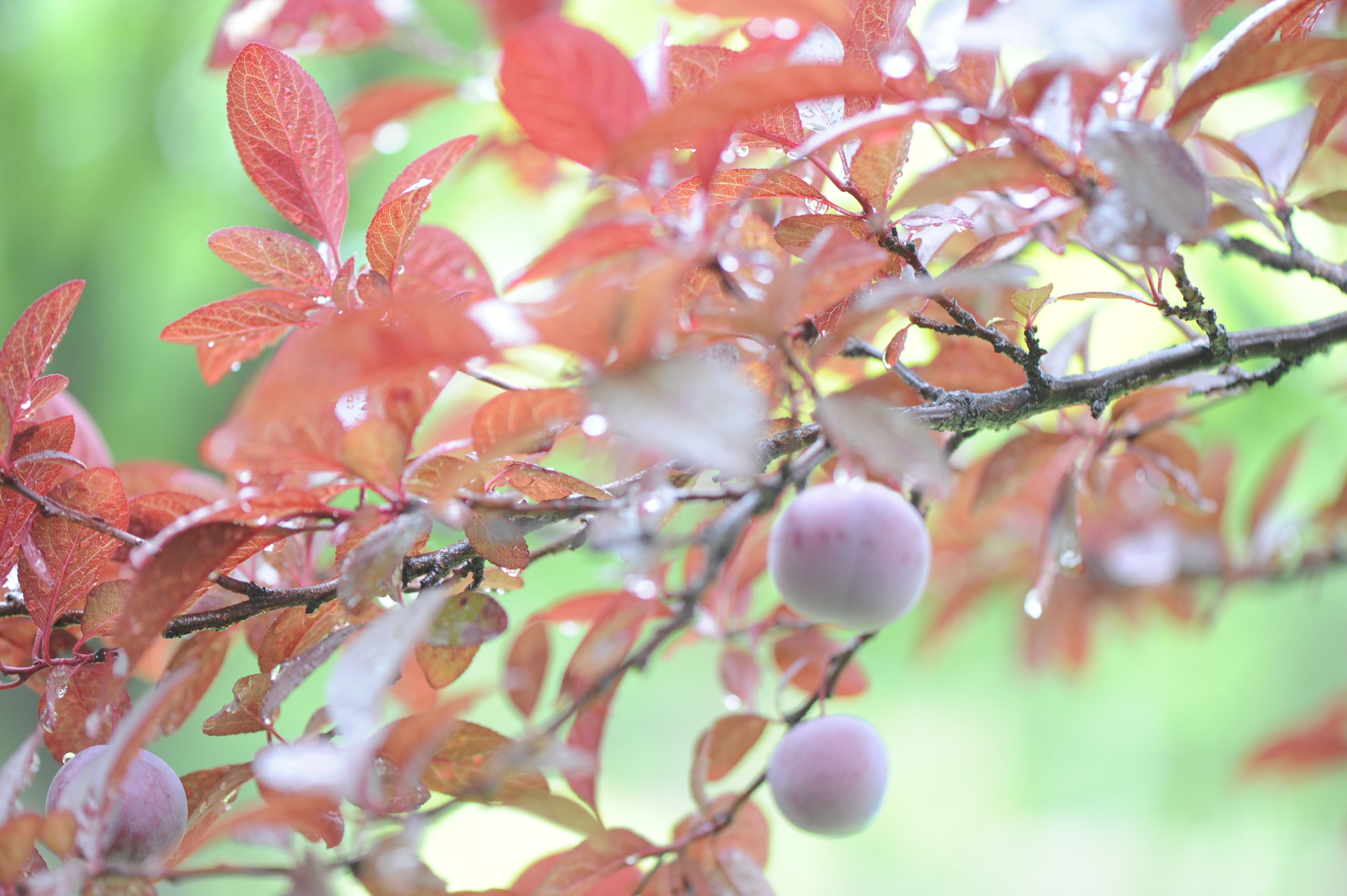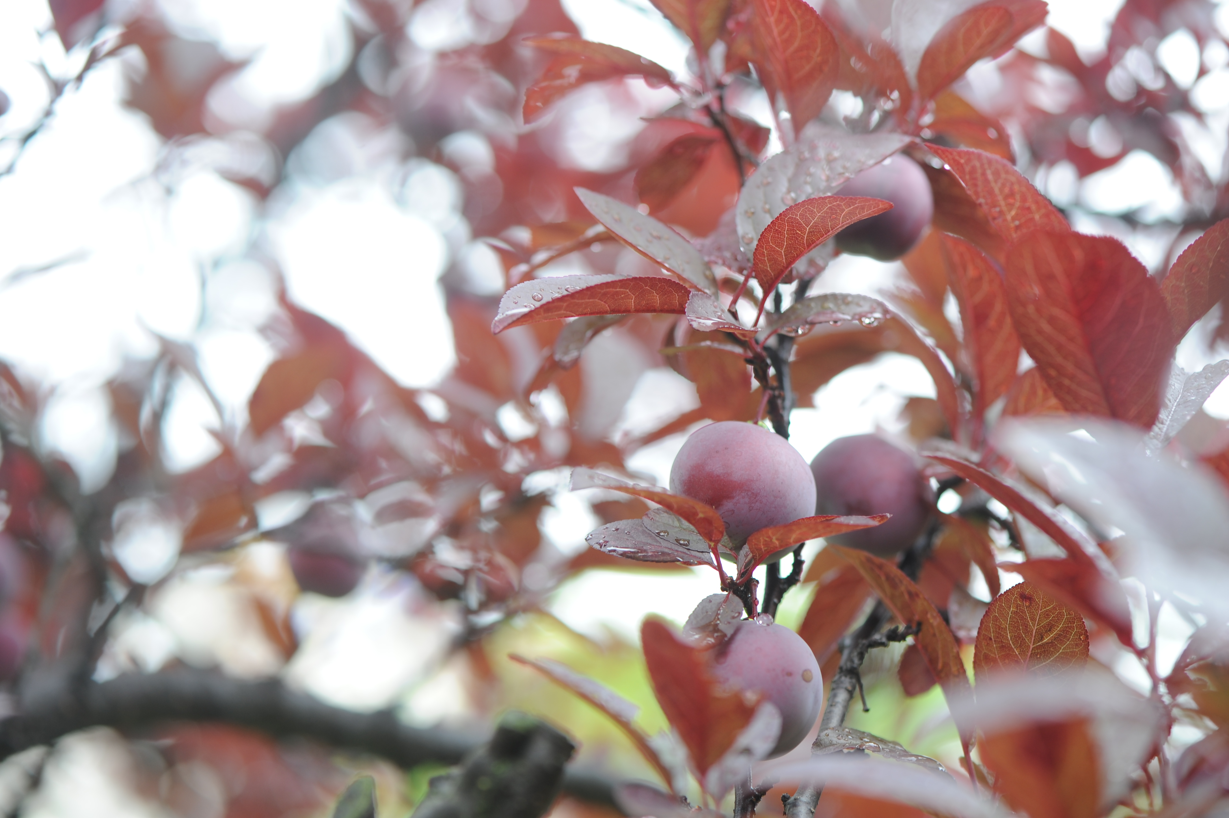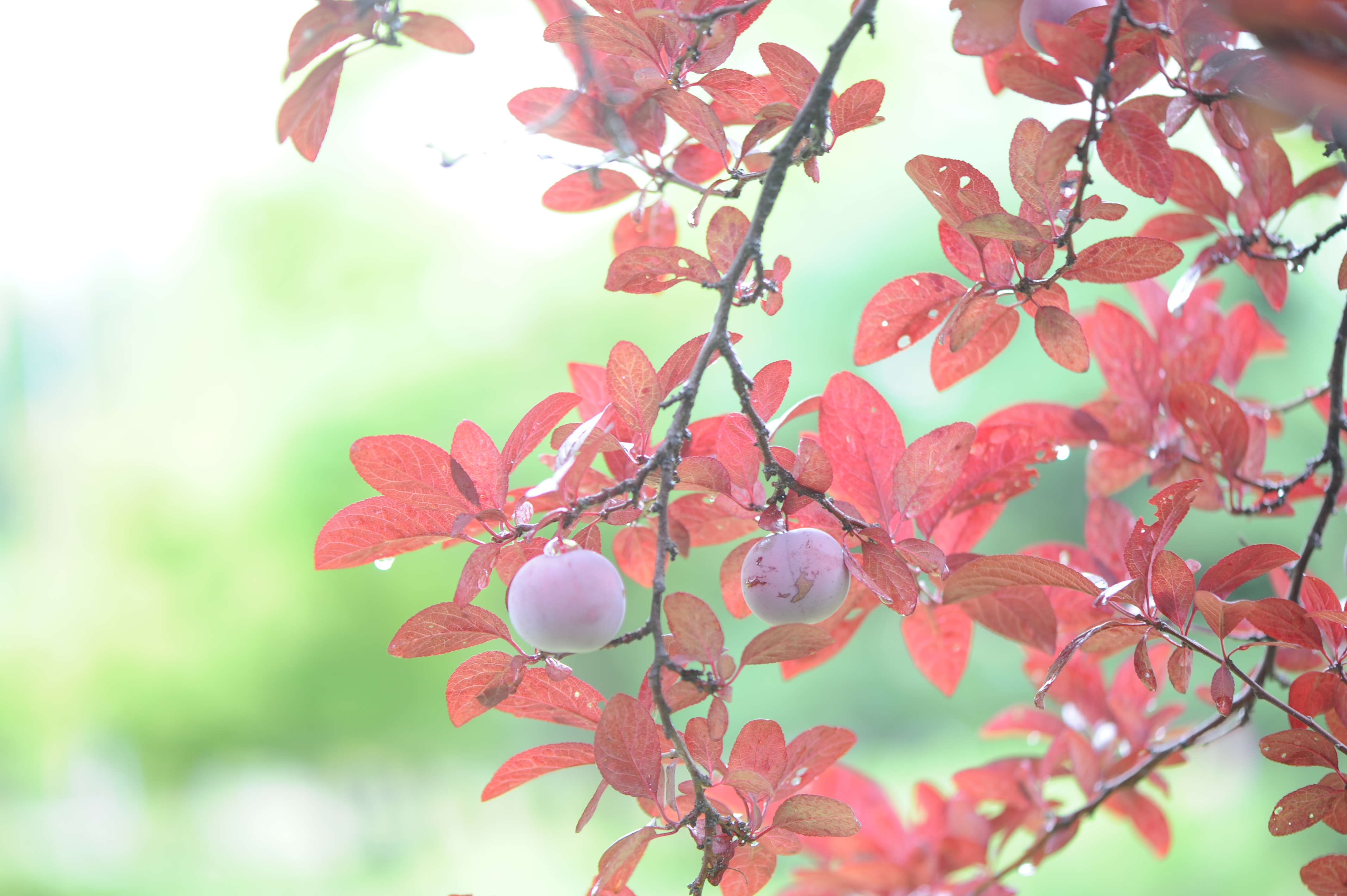 * 지난 4월 초에 꽃을 담았었는데 벌써 열매(자엽자두, 서양자두)가 검붉은색으로 익어가는군요.