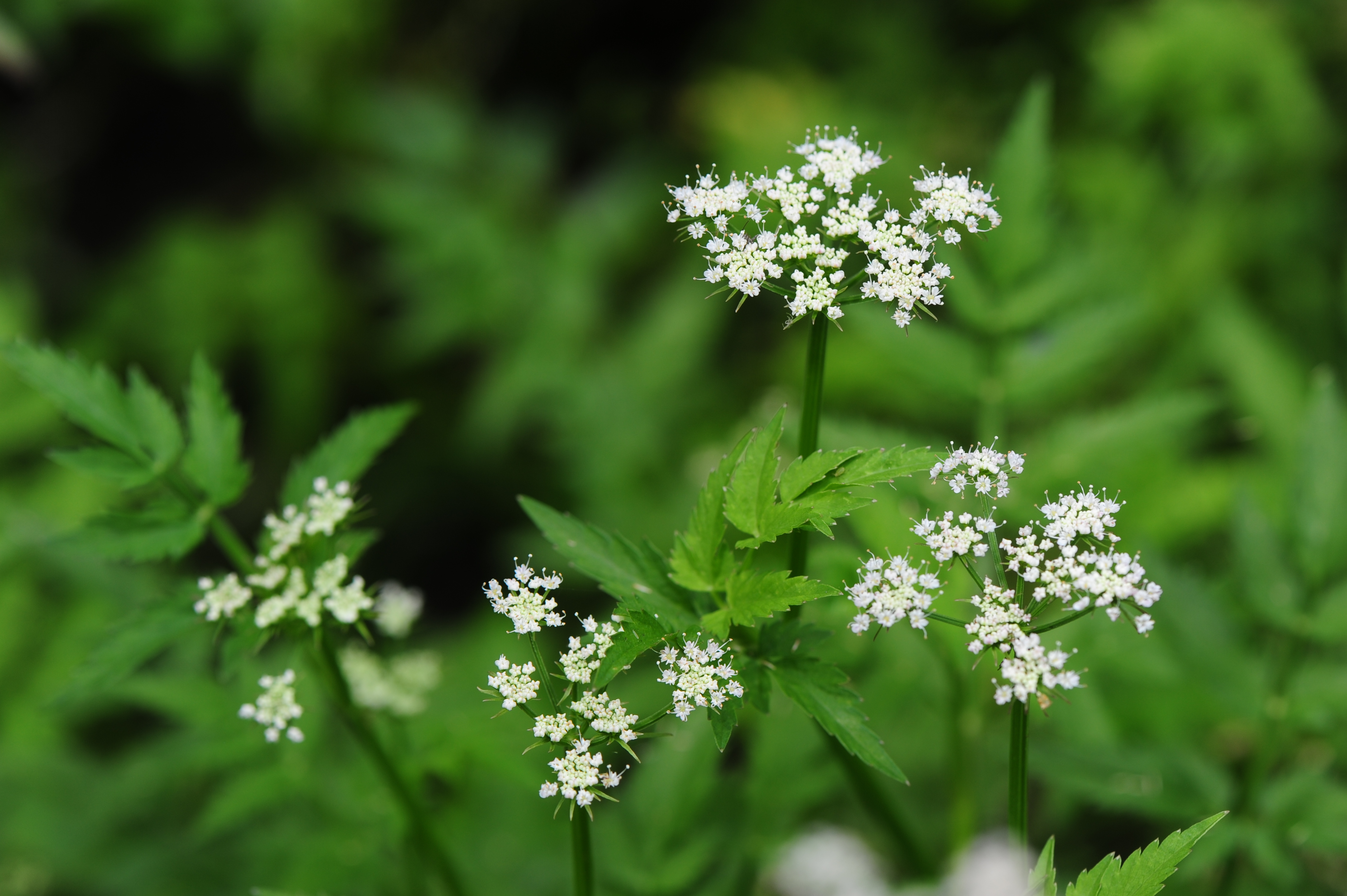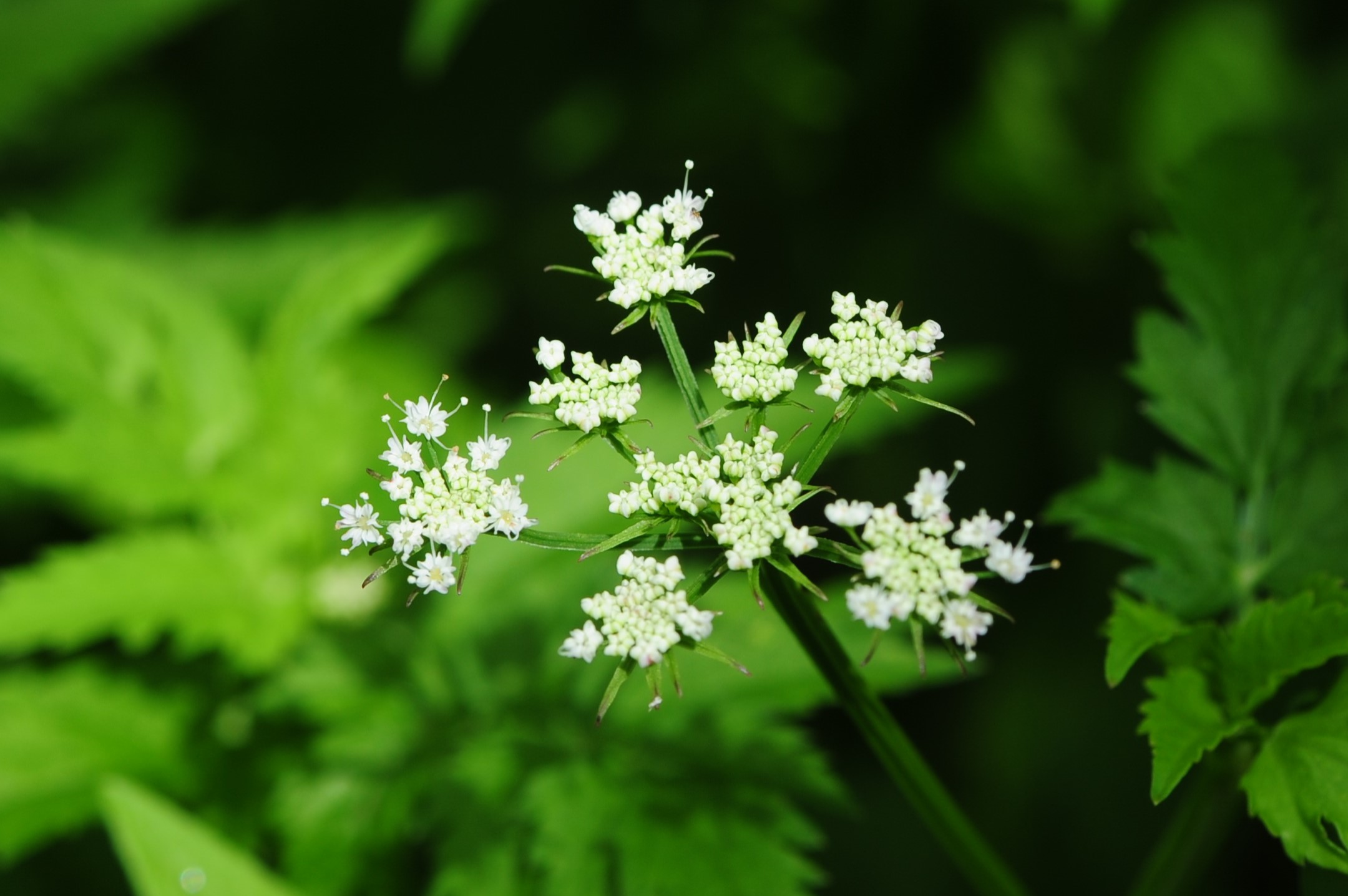 꽃은 6~9월에 줄기 끝 또는 잎과 마주난 꽃대에 복산형화서(複繖形花序 겹산형꽃차례 : 우산 모양 꽃차례의 꽃대 끝에서 다시 우산 모양으로 갈라지는 것)로 피며, 흰색이다. 꽃싸개잎은 없거나 1~3장, 일찍 떨어진다. 작은 꽃차례에는 꽃이 10~25개 달린다. 작은 꽃싸개잎은 5~15장, 선형이다. 꽃잎은 5장, 끝이 안으로 말린다. 수술은 5개, 꽃잎보다 길다.