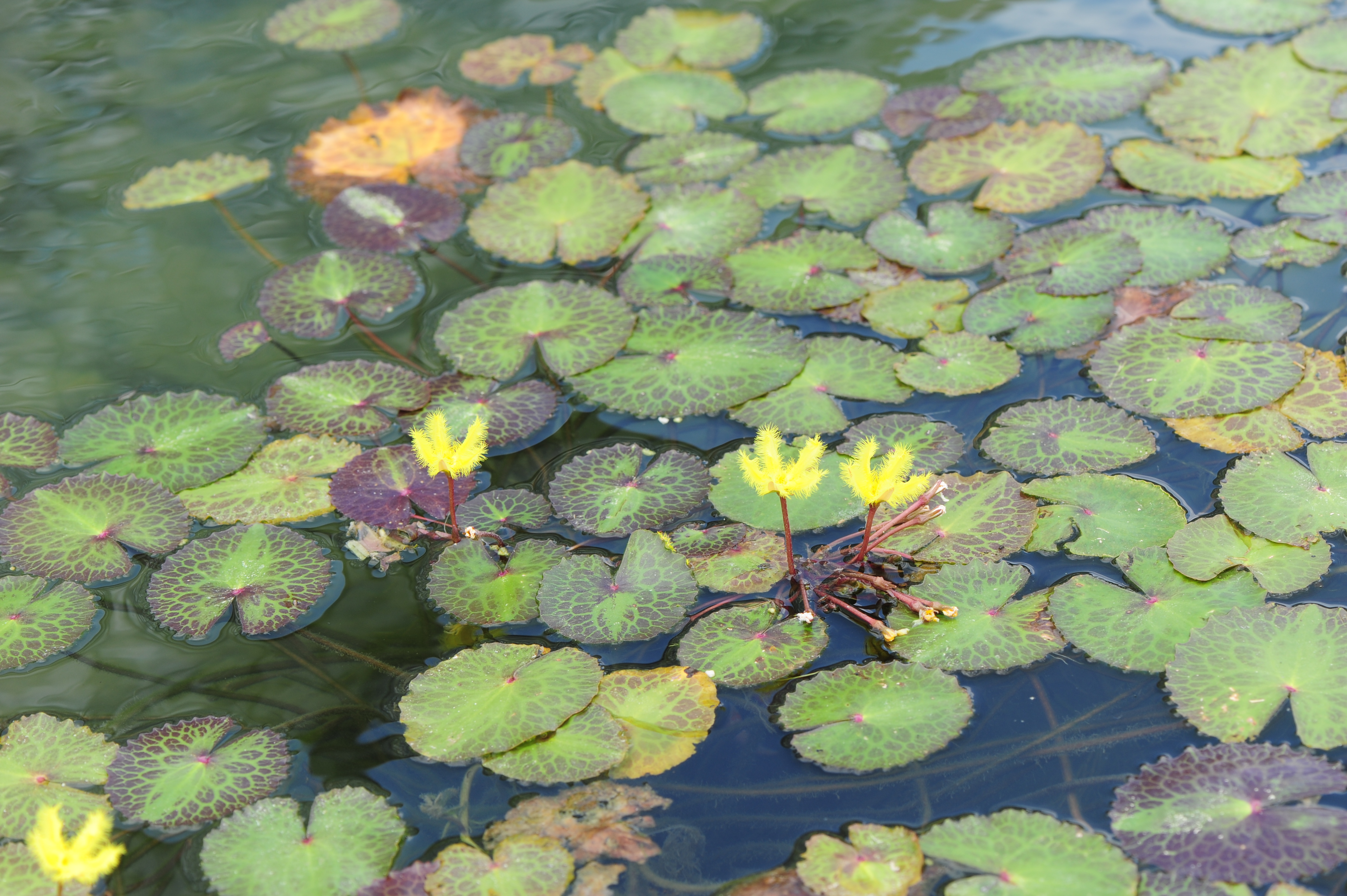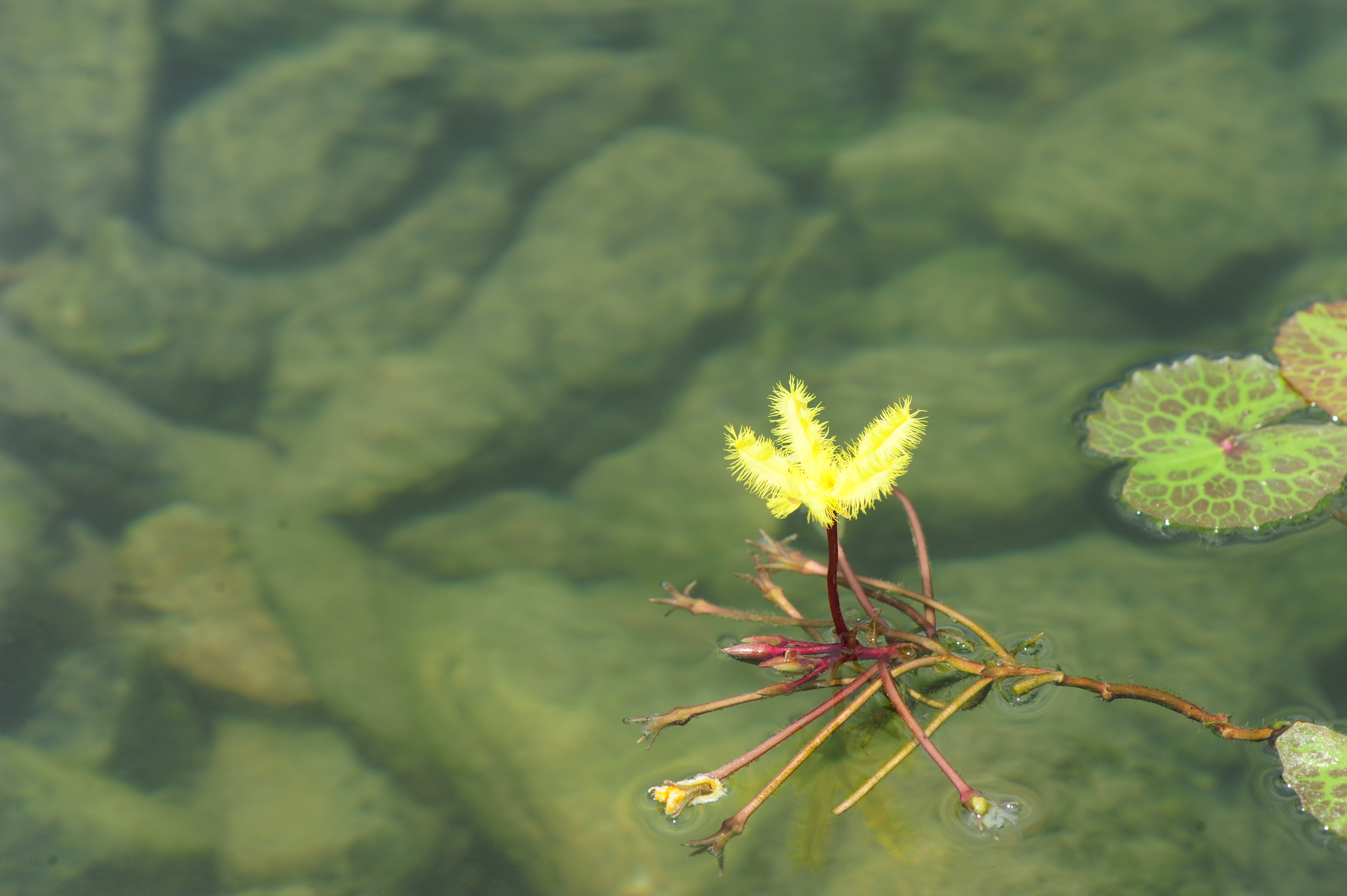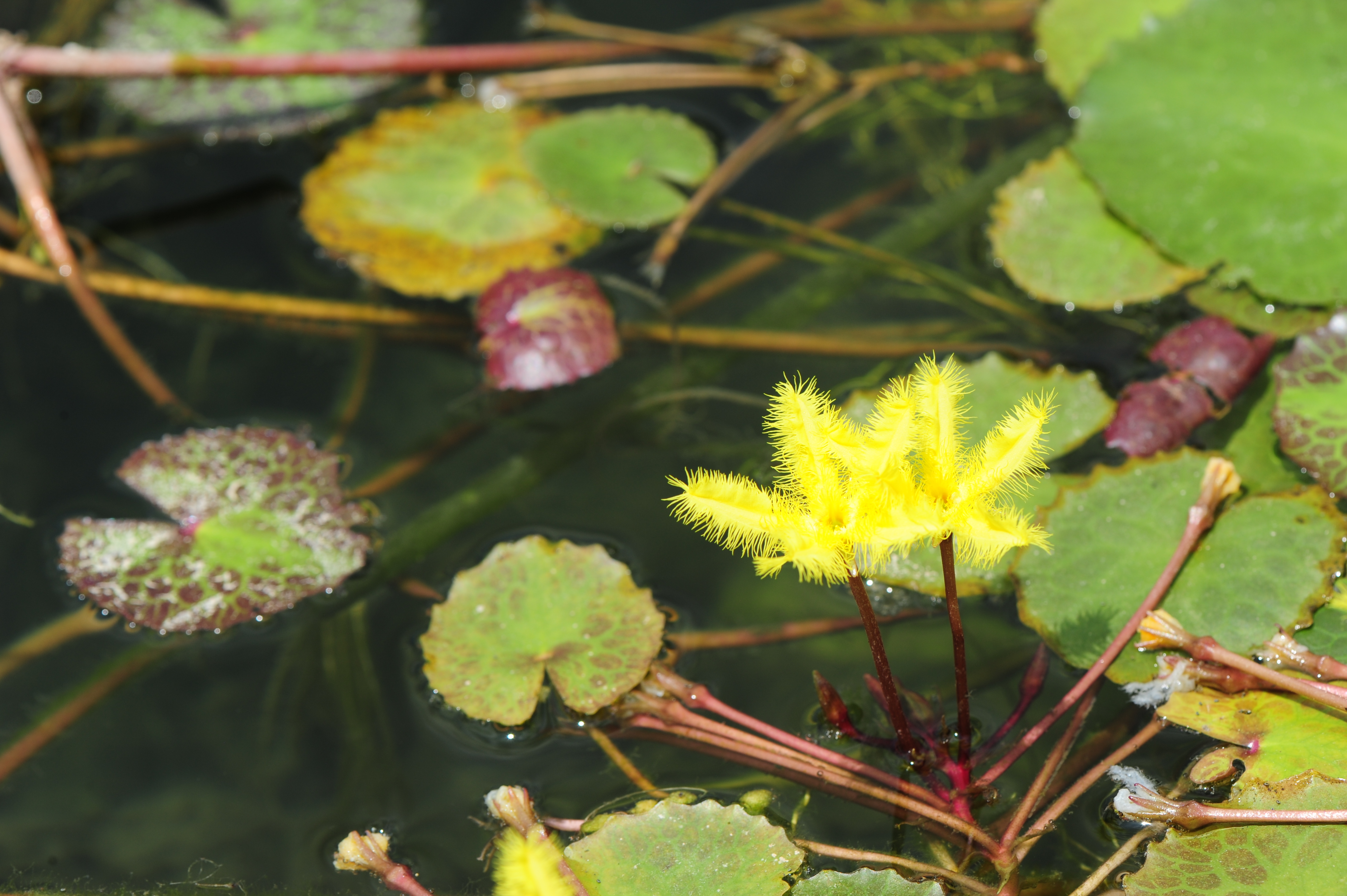 * 잎에 얼룩 반점이 많고 꽃부리 가장자리에 긴털이 도드라지게 길군요. 노랑어리연이 아닌 다른 종일까? 노랑어리연꽃으로 올린다.