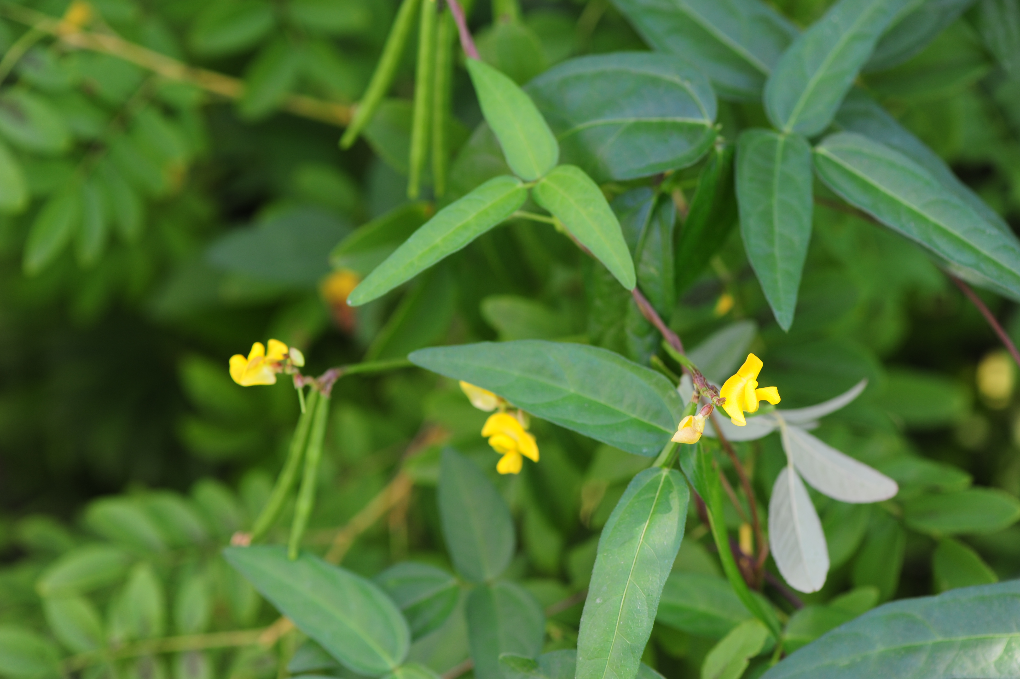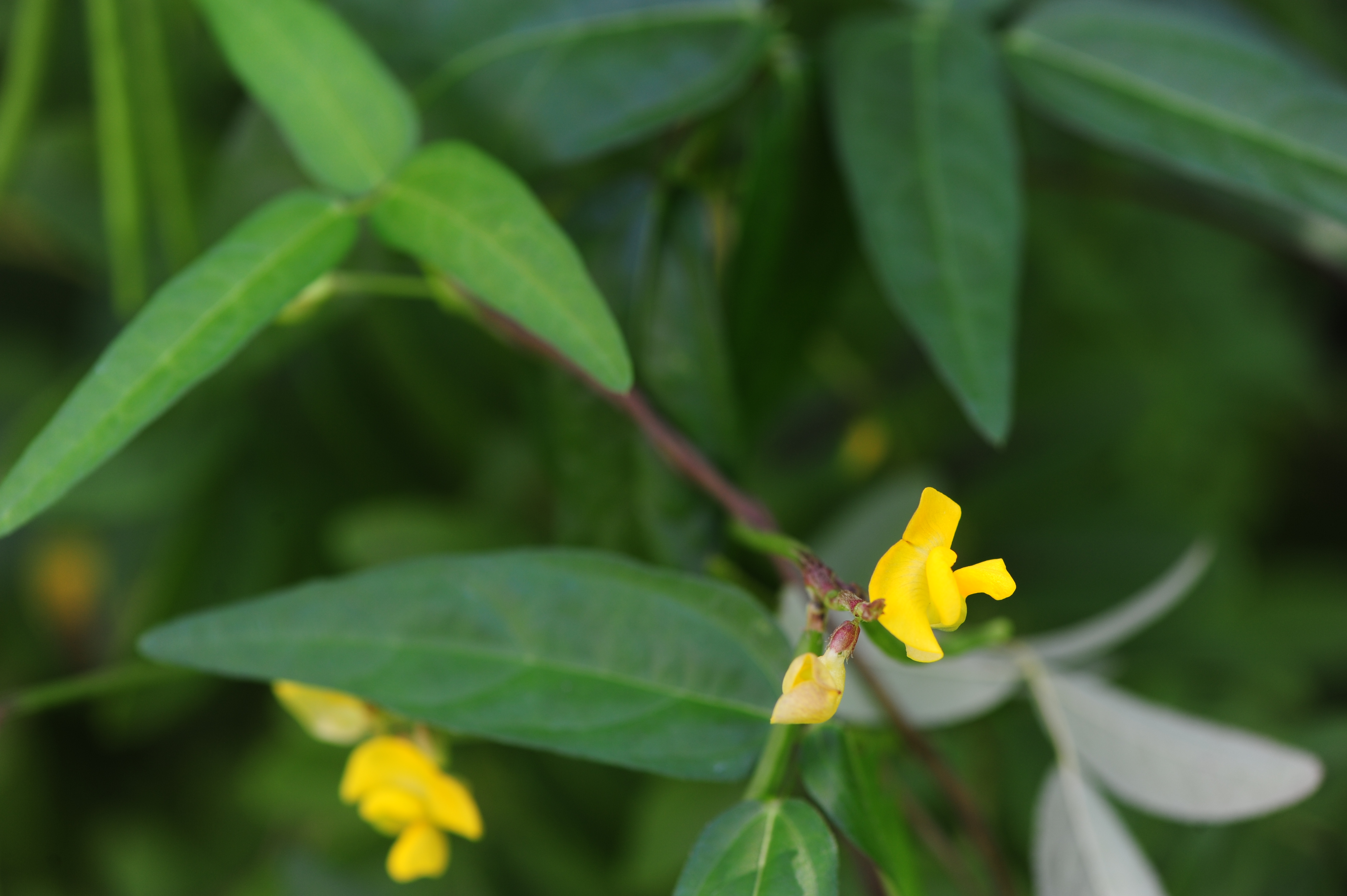꽃은 8월에 연한 황색으로 피며 잎겨드랑이에서 긴 화경이 나와 끝에 2~3개의 꽃이 달린다. 꽃받침은 끝에 5개의 톱니가 있고 꽃부리는 나비형이며 용골꽃잎은 2개가 합쳐져서 나선상으로 꼬이고 암술은 윗부분의 한쪽에 털이 있다.