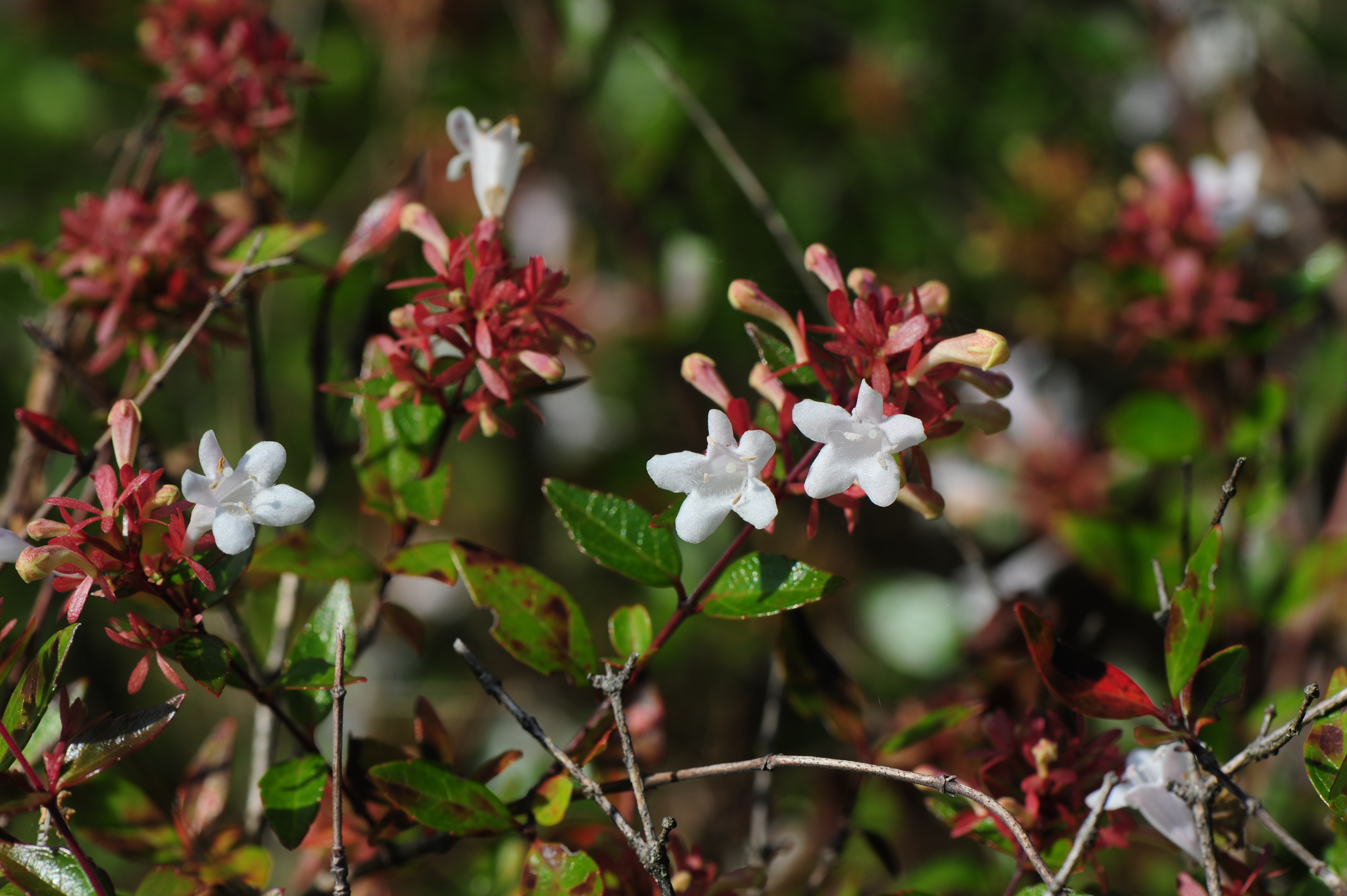 ° 꽃댕강나무 - 원예종으로 개발된 중간잡종(일본에서 도입), 흰색 꽃이 핀다.