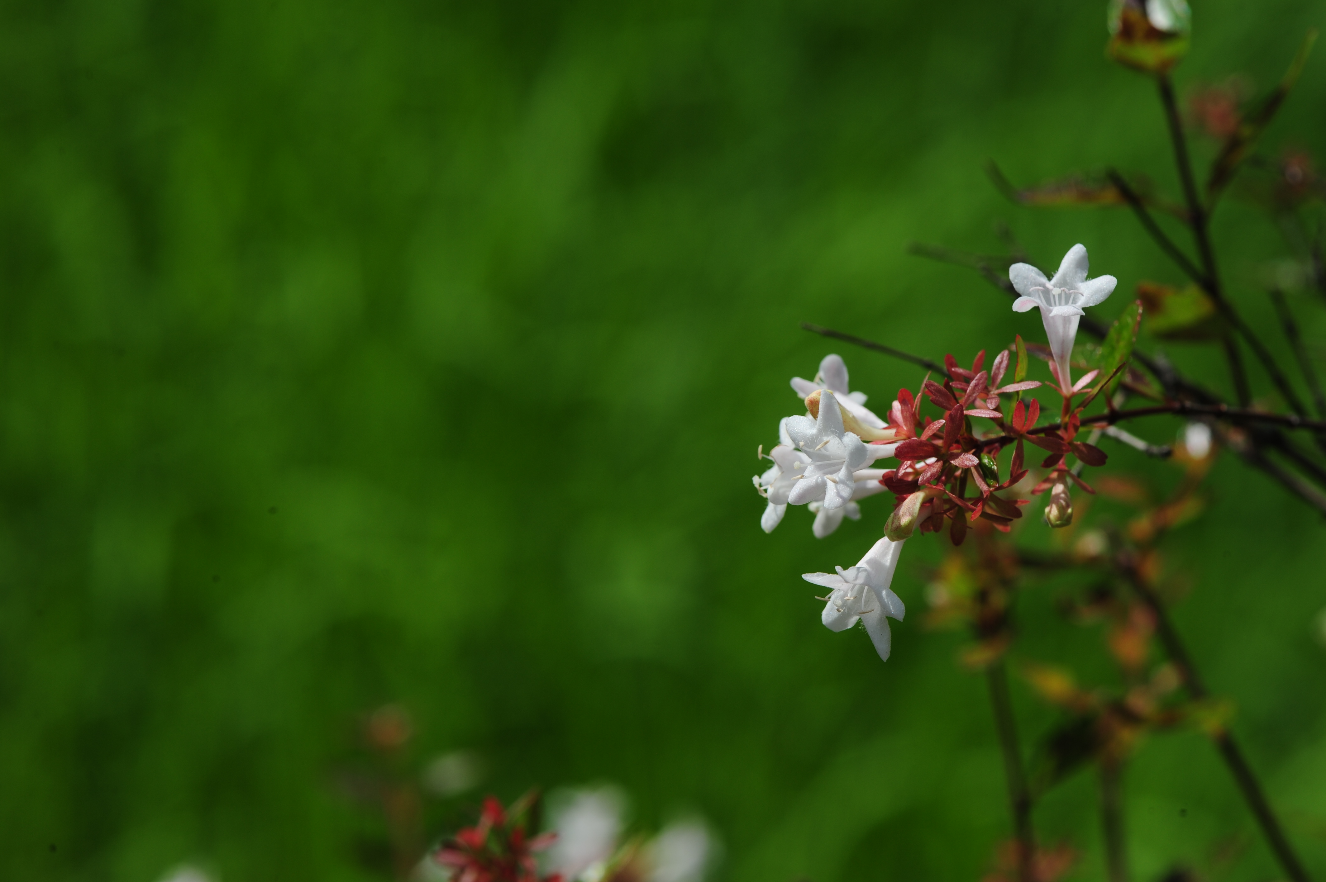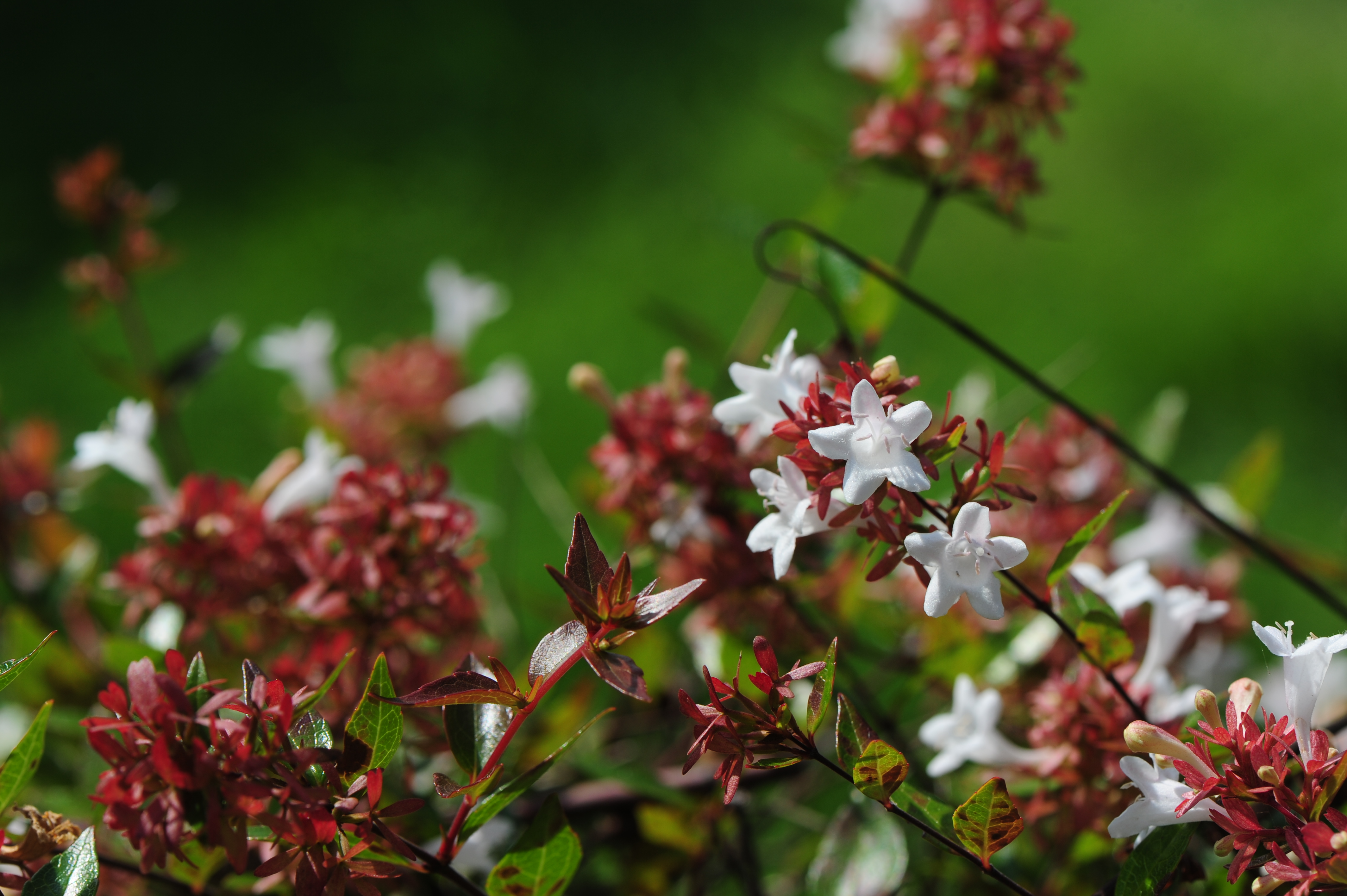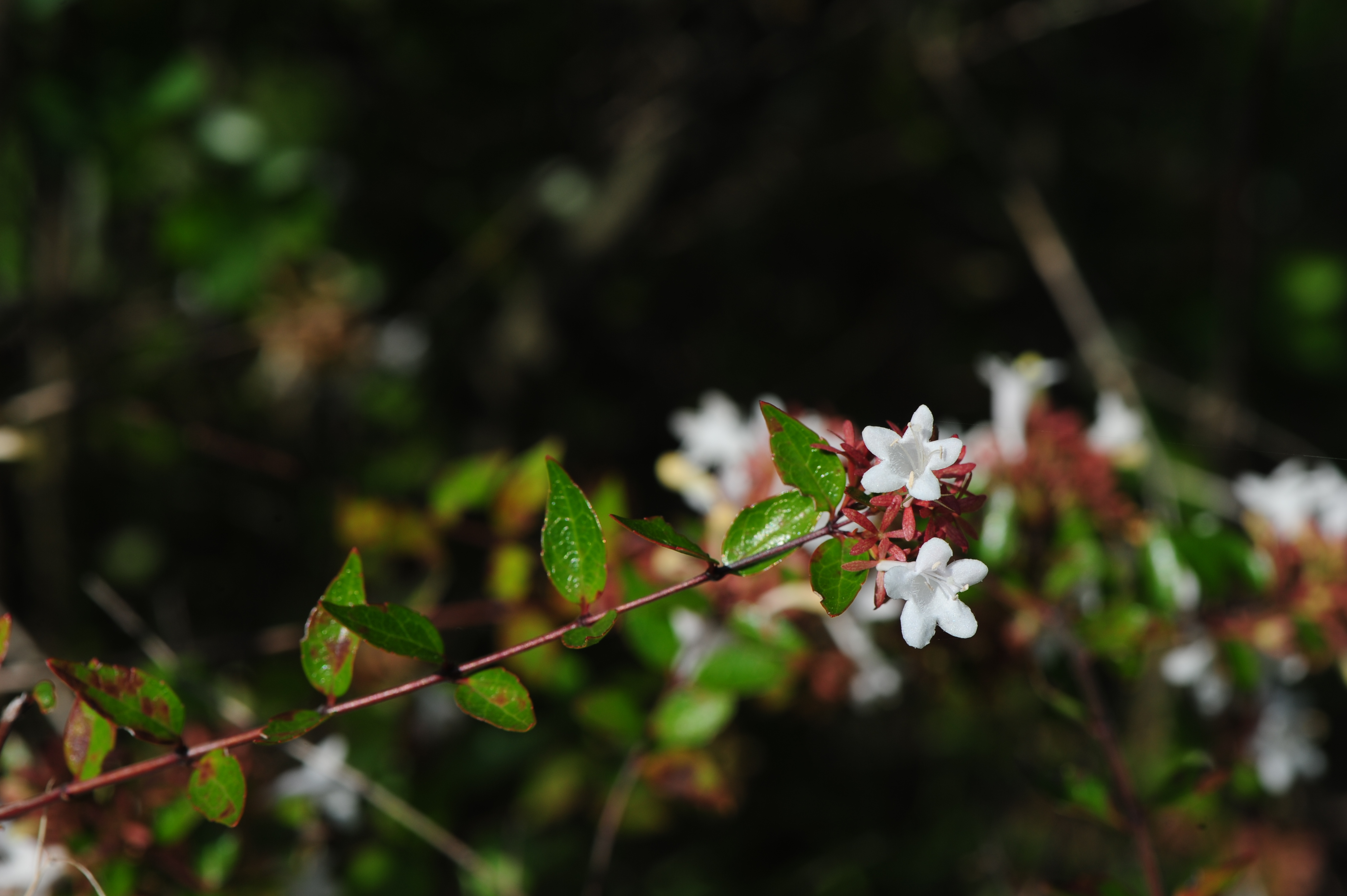 ° 털댕강나무 - 잎은 난 피침형이고 단모가 분포하며 가지는 규칙적으로 대생분지를 한다. 가지 끝에 두 송이 달린다.