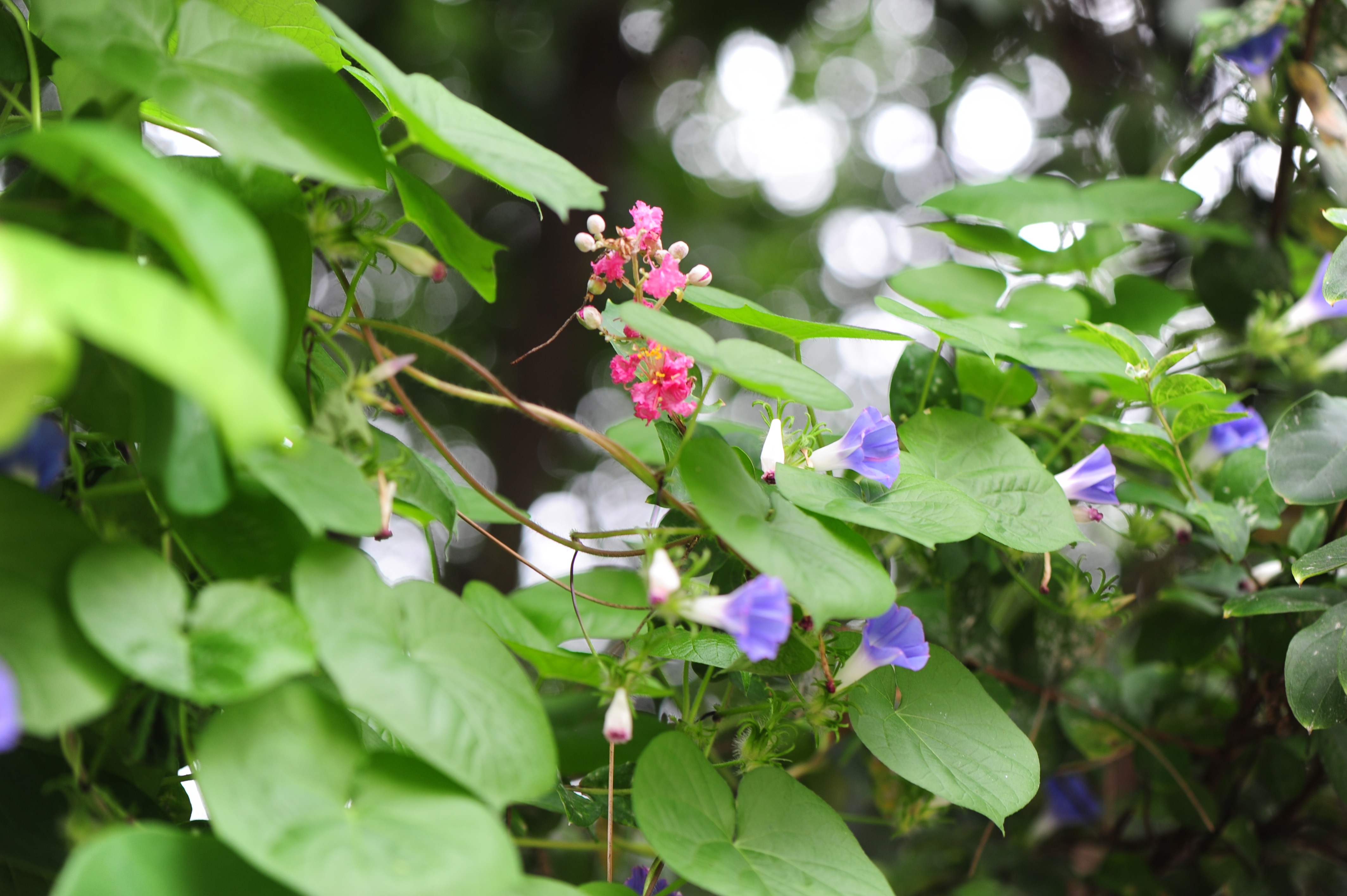 * 잎이 깊게 갈라진 미국나팔꽃과 꽃 색깔이 같아 보이는데 둥근잎나팔꽃은 잎이 둥글군요.