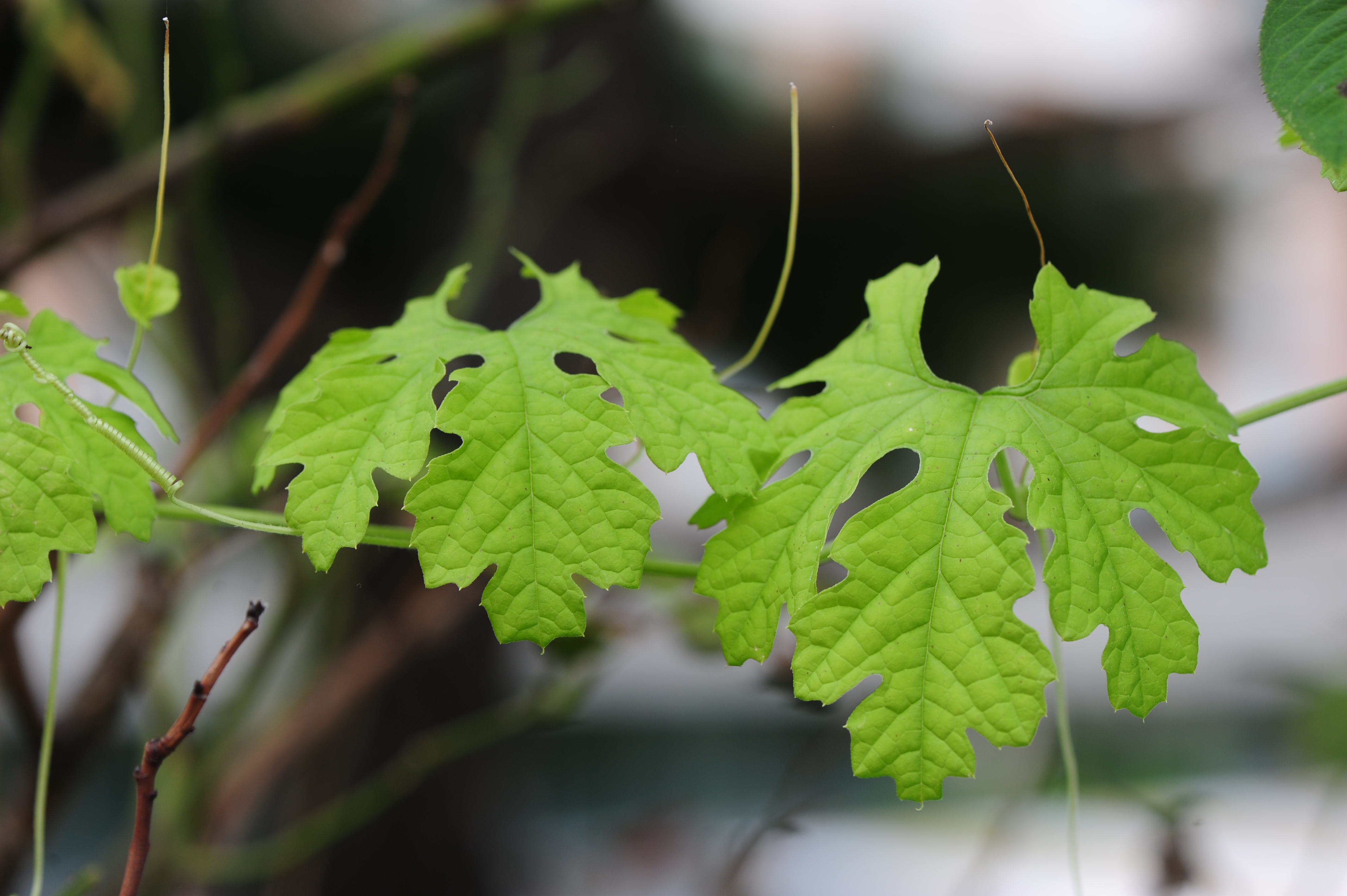 • 수세미오이(수세미오이속) : 잎은 어긋나기, 잎자루는 길고, 얕게 손바닥 모양으로 갈라지며, 갈래는 끝이 뾰족하고, 길이와 폭이 각각 13~30cm, 꺼칠꺼칠하고, 양면에 털이 없으며, 가장자리에 톱니가 있다.