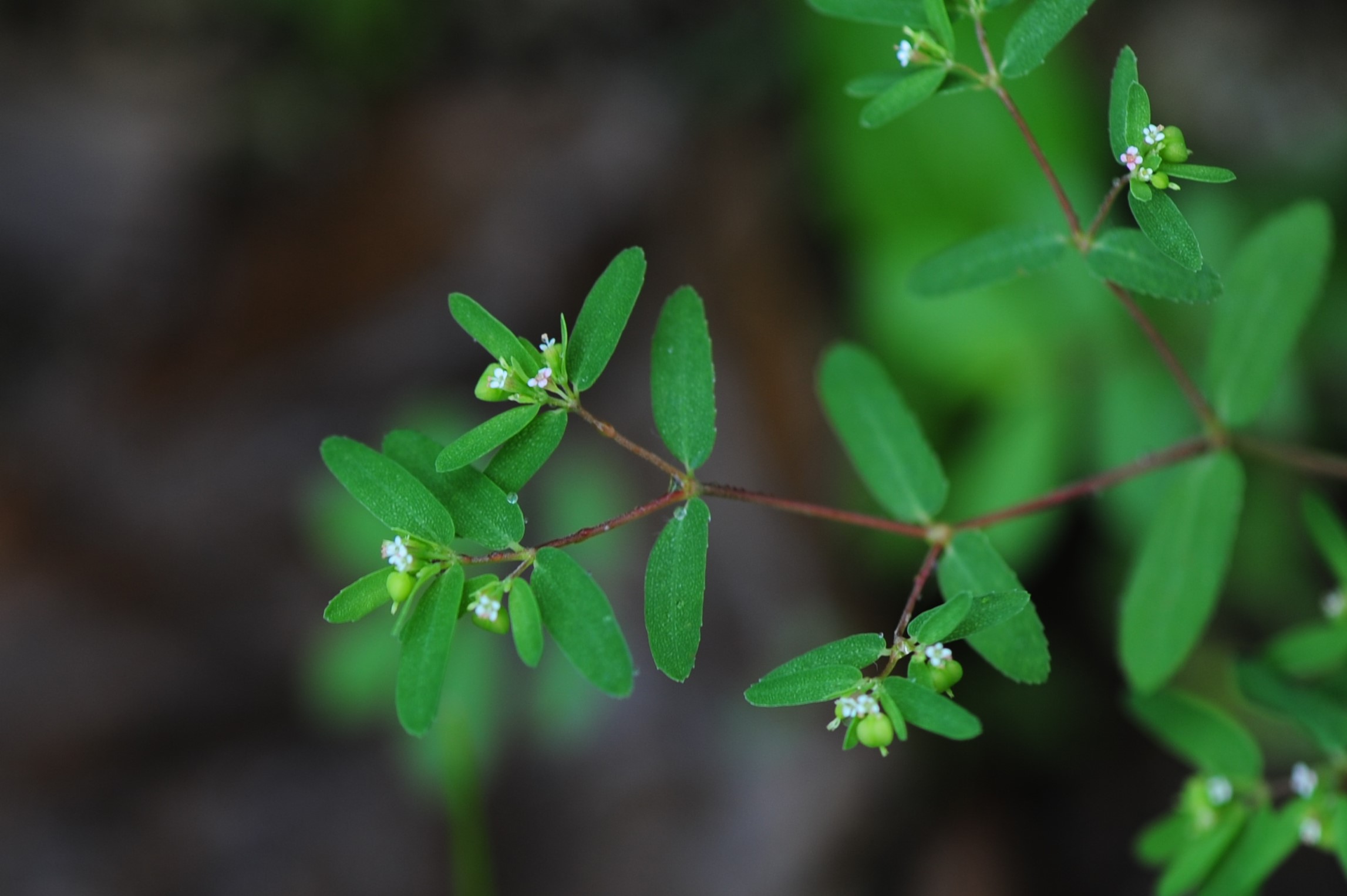 • 애기땅빈대 : 잎과 줄기에 흰 털이 퍼져 나고 열매는 삭과, 털이 있다.