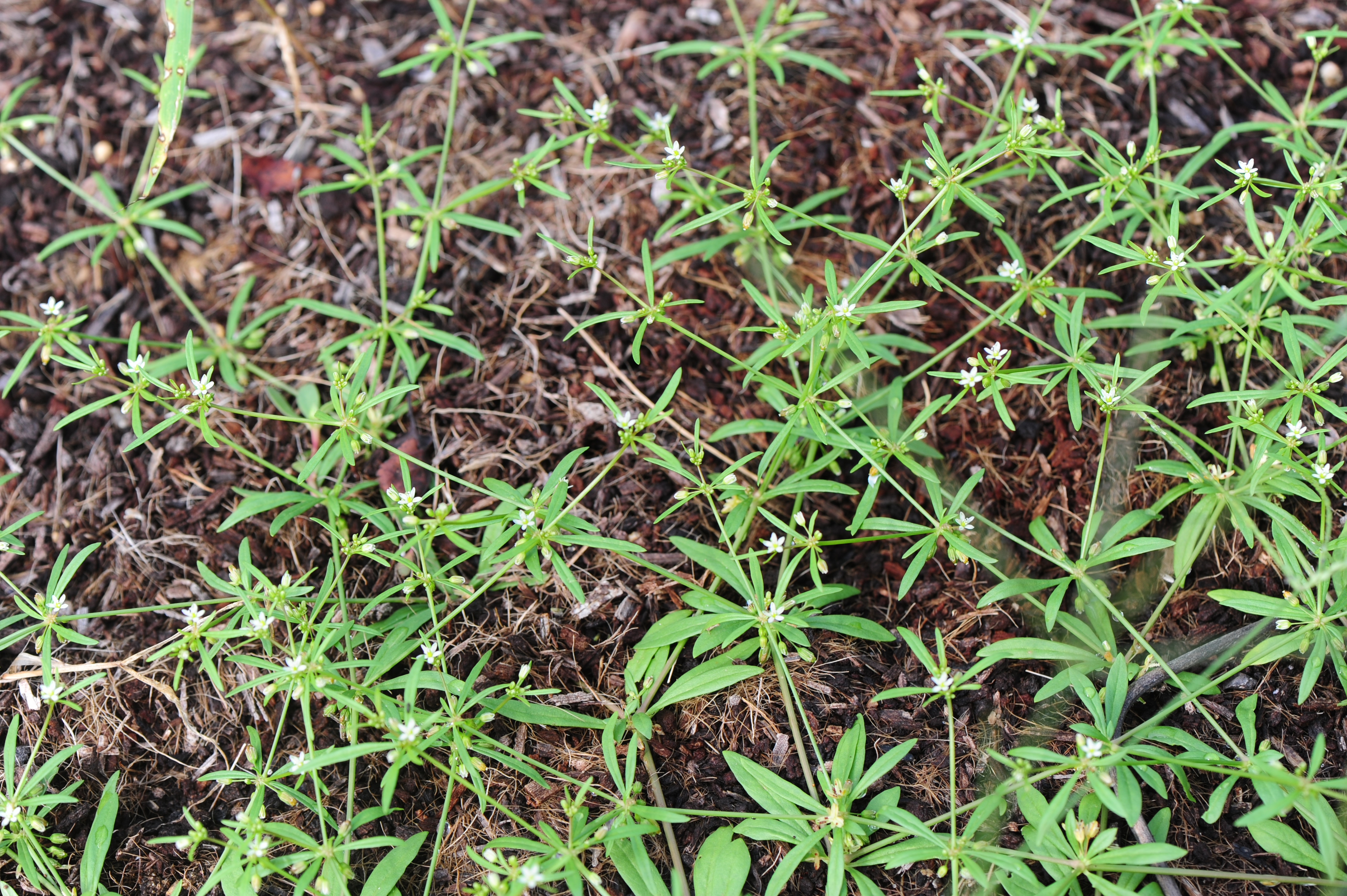 • 석류풀 : 전체에 털이 없고 줄기에는 능선이 있다. 잎은 3~5장씩 돌려나기, 피침형, 길이 1.5~3cm이다.