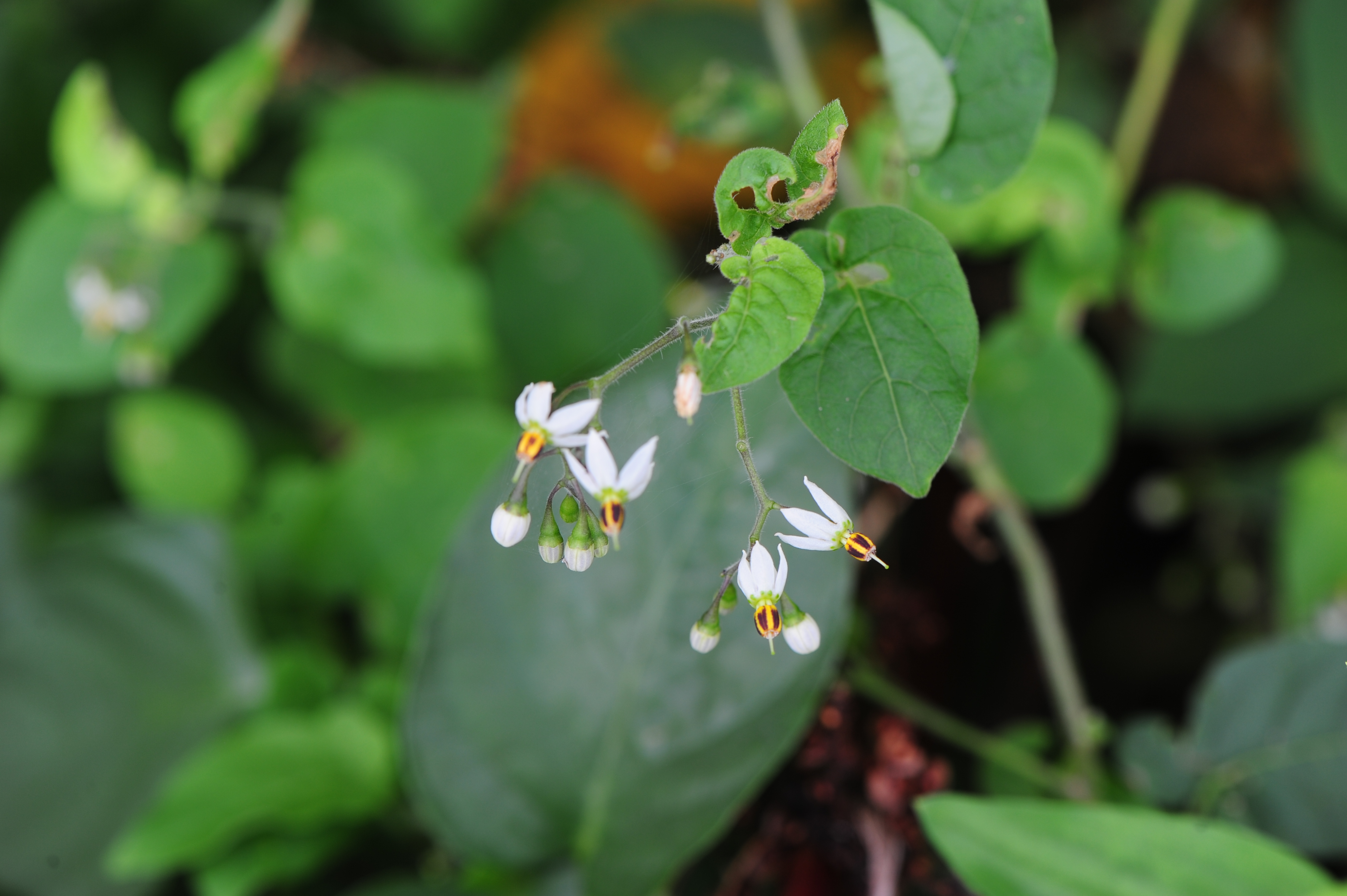까마중과 배풍등은 흰색의 꽃잎이 뒤로 뒤집혀져서 꽃 모양이 같아 보이는군요.