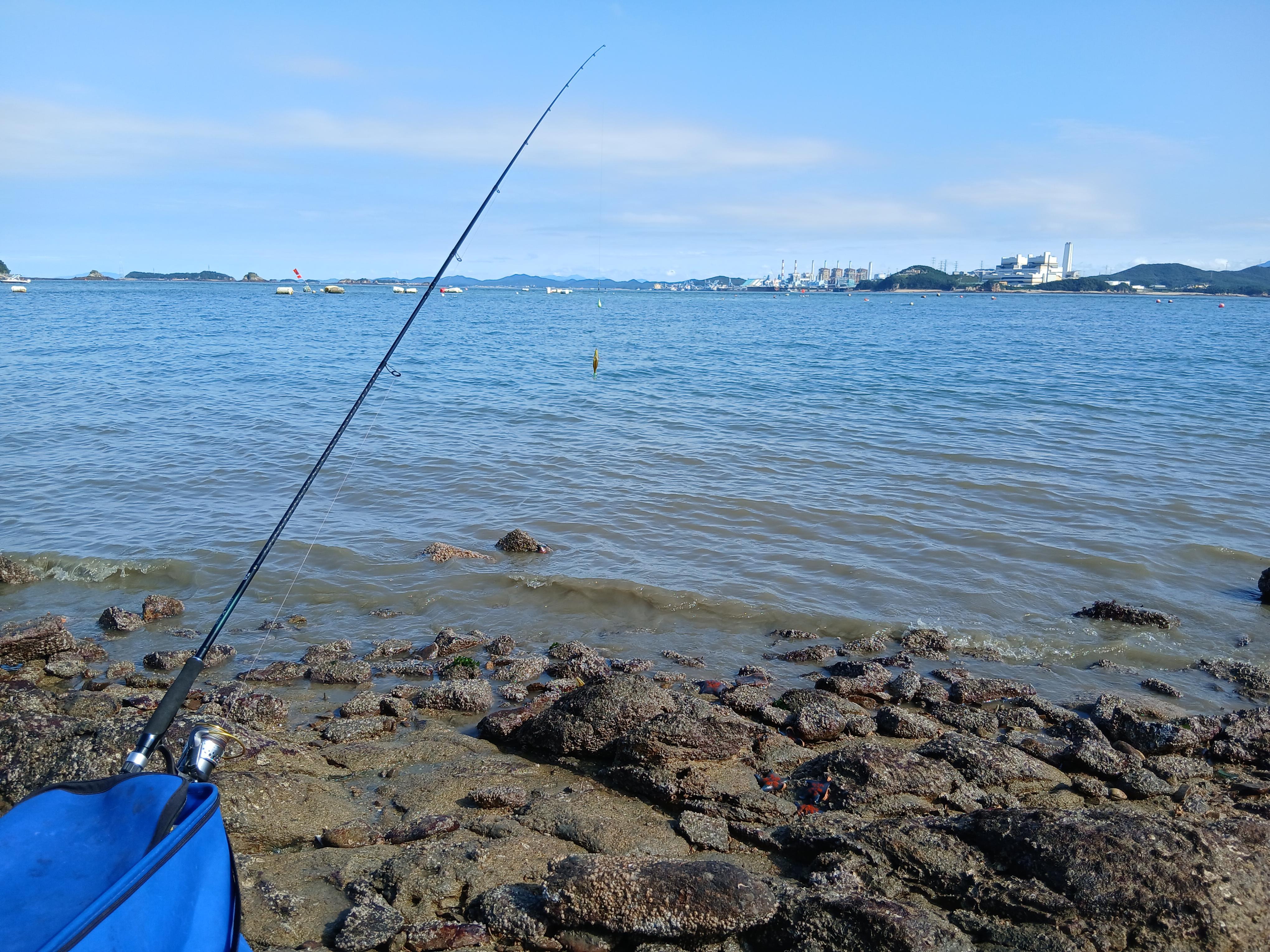 * 9물 사리물때 끝날물~초들물(약 2시간)에 에깅낚시에는 좋지 않은 물 때군요. 바다가 한산하네요. 에깅배가 없어요.