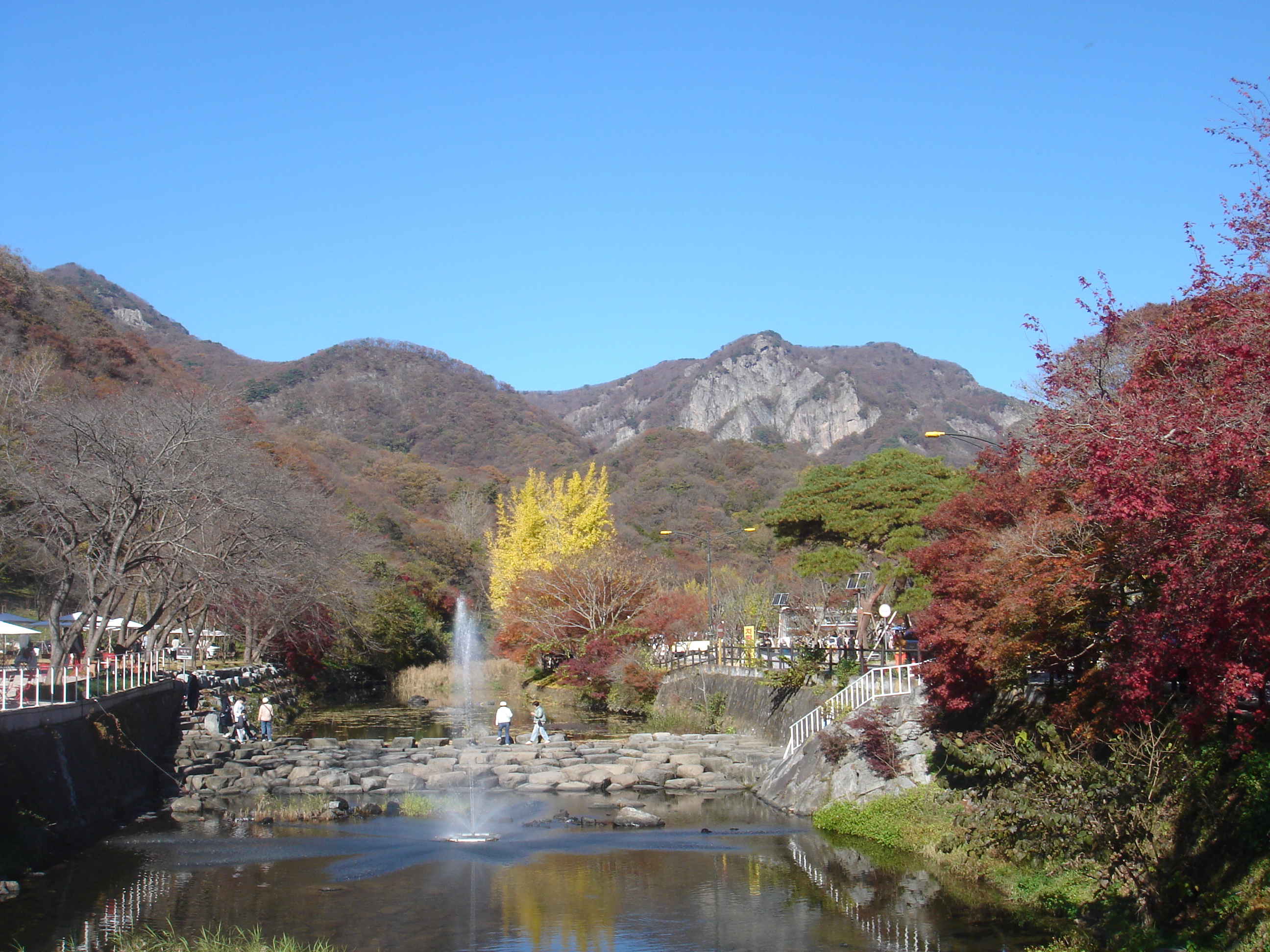 백암산 단풍 고와 쌍계루 앞 다가가니