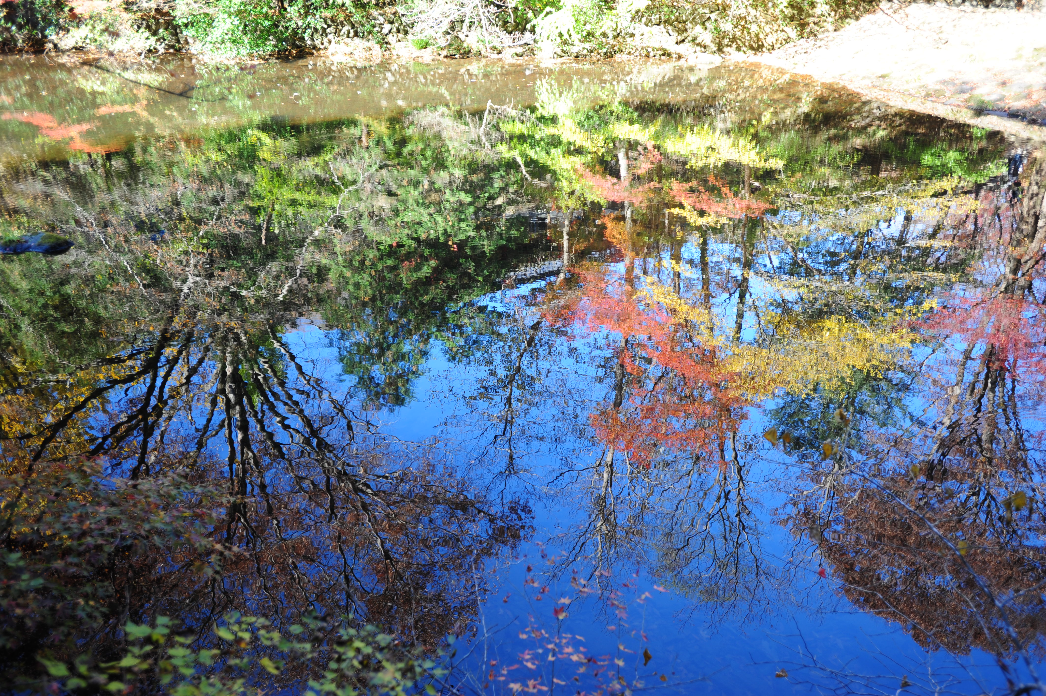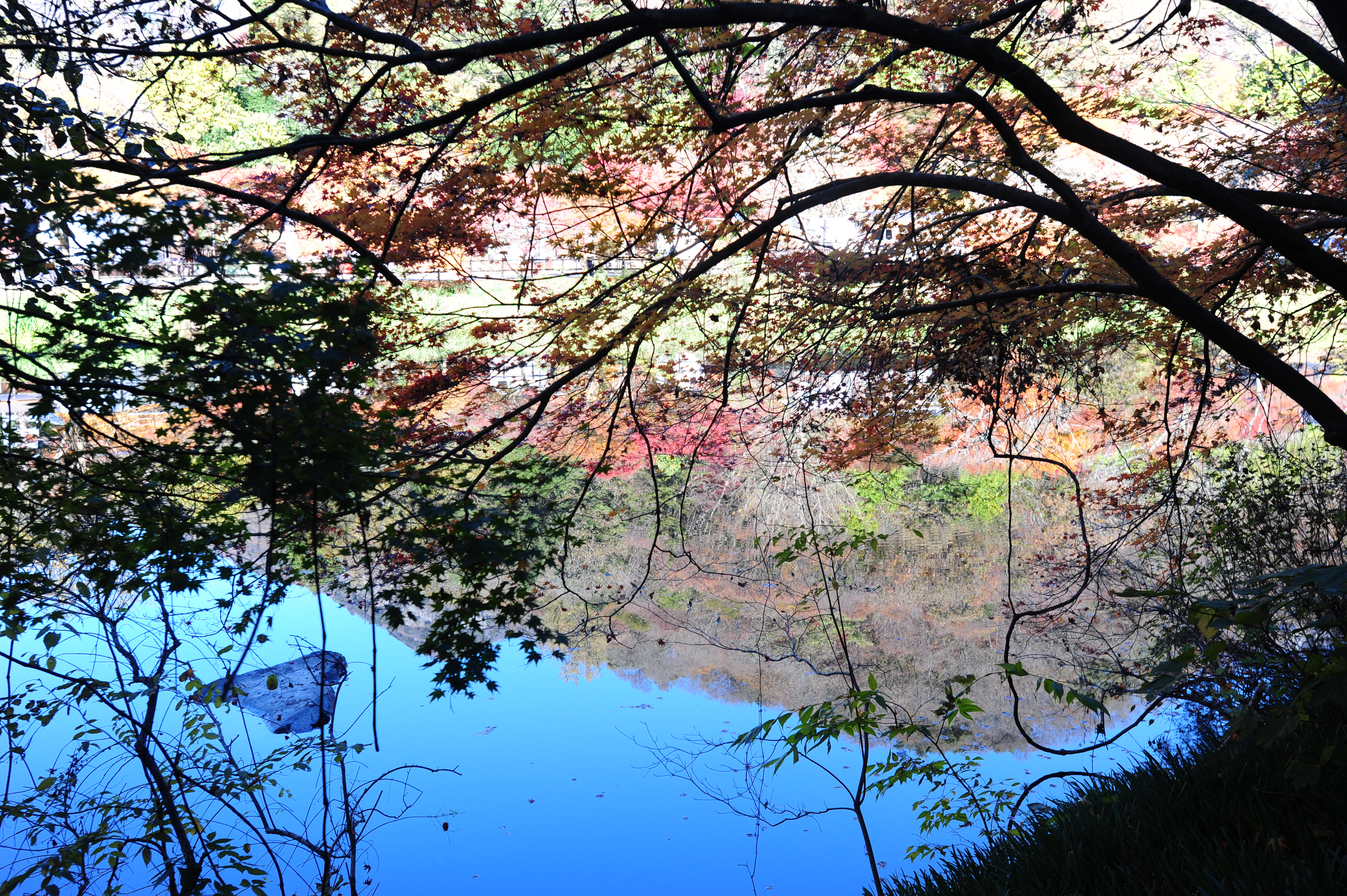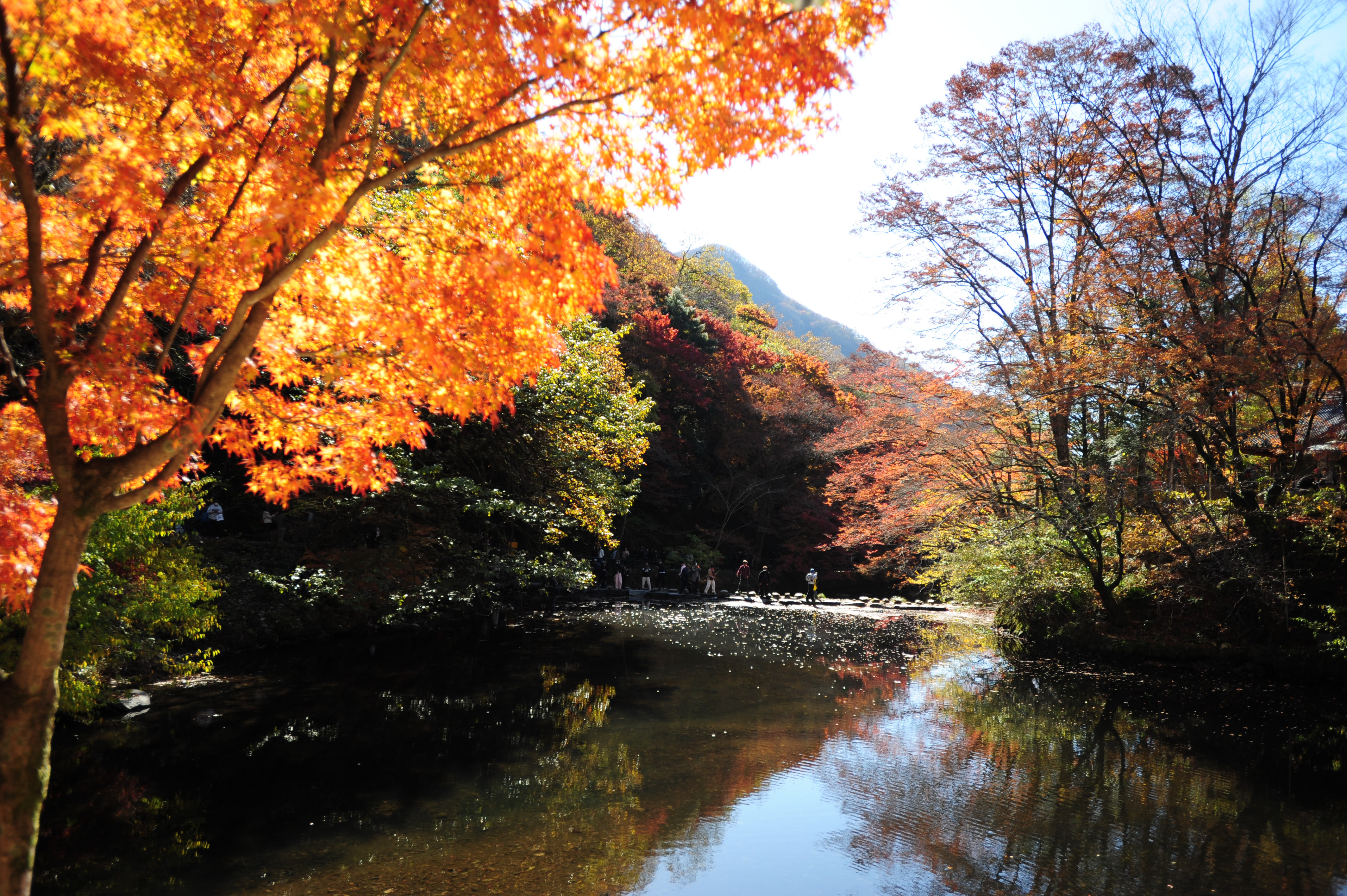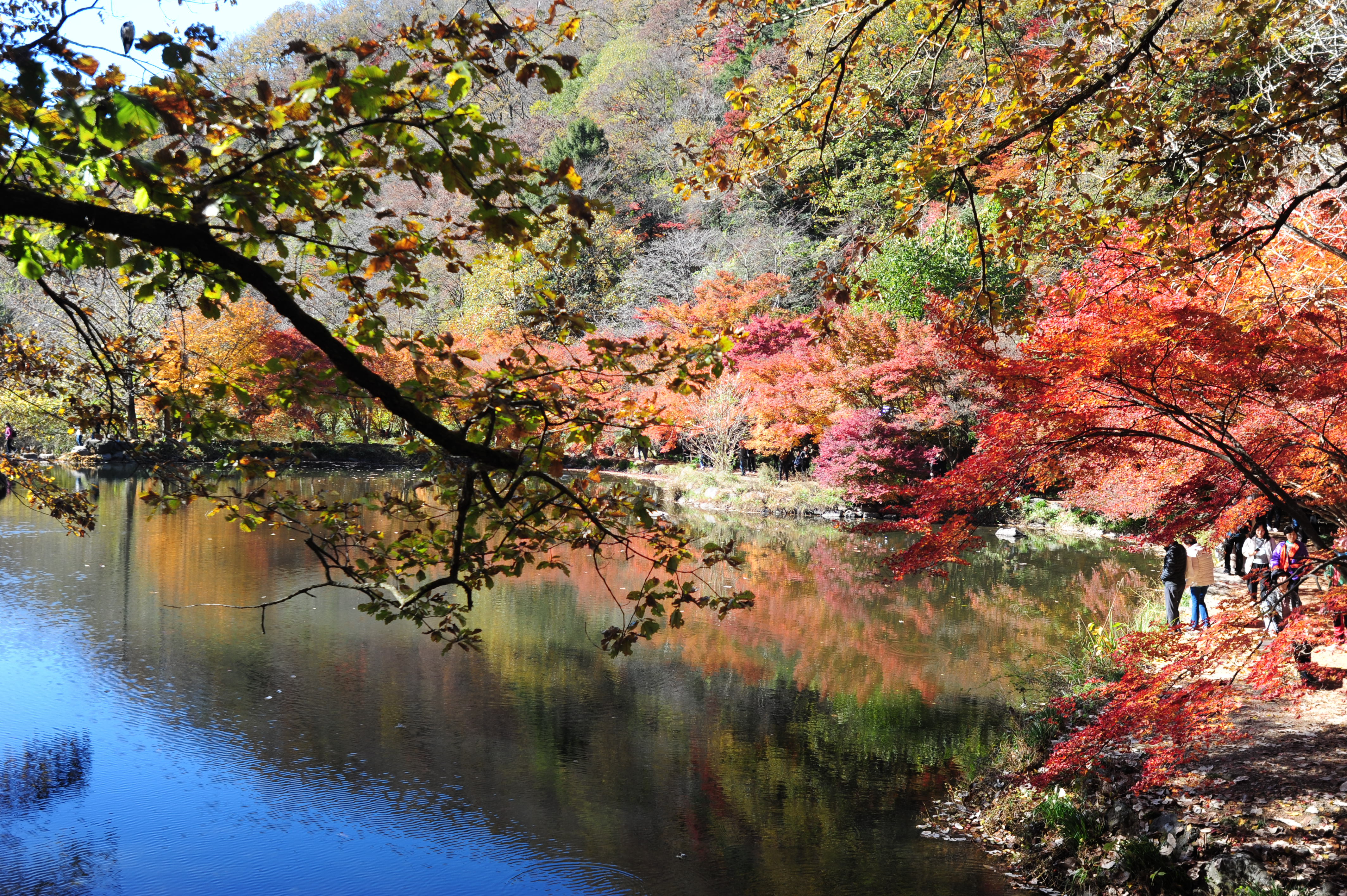 붉은빛 애기단풍 형형색색 물속 잠겨
