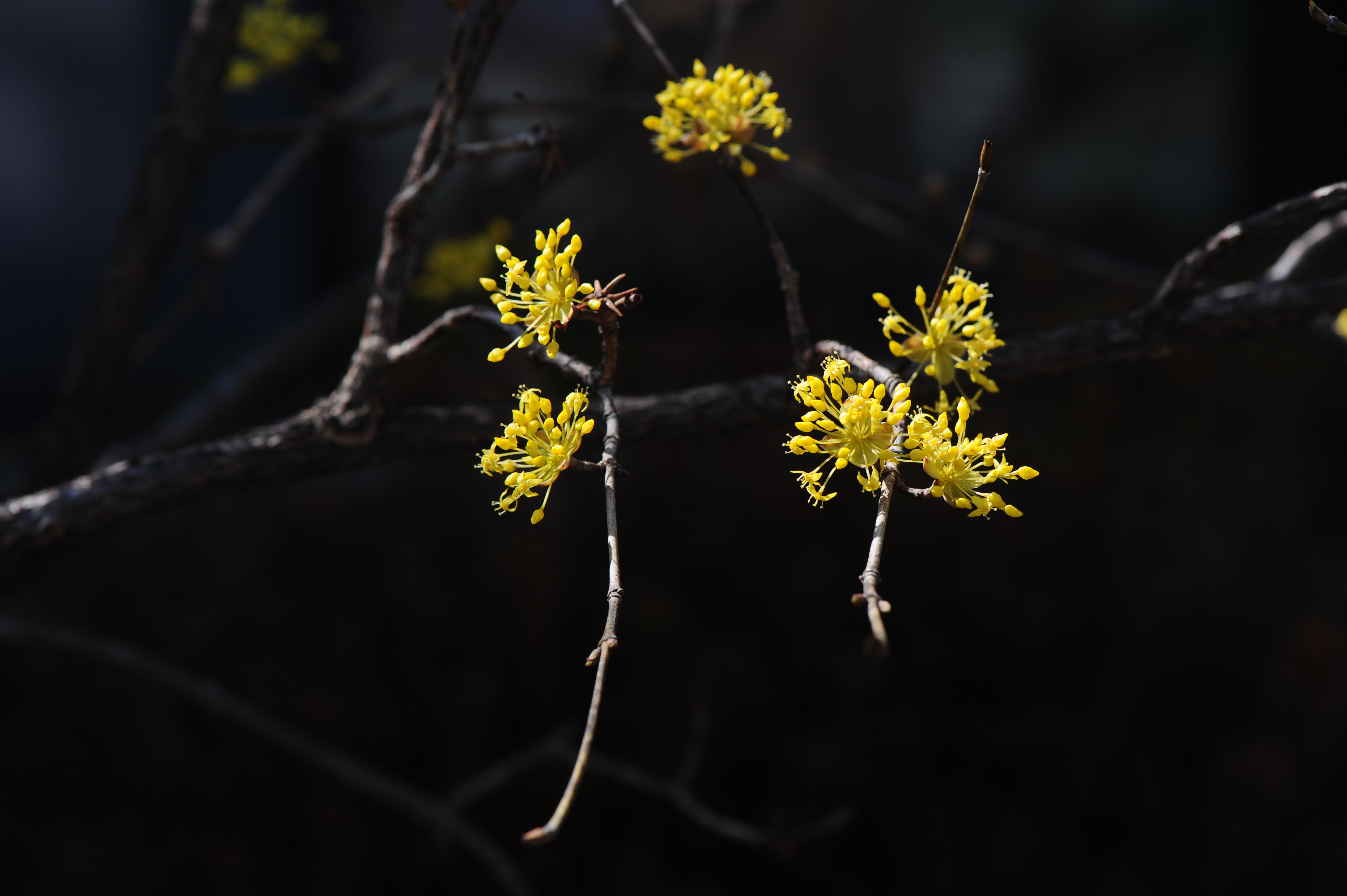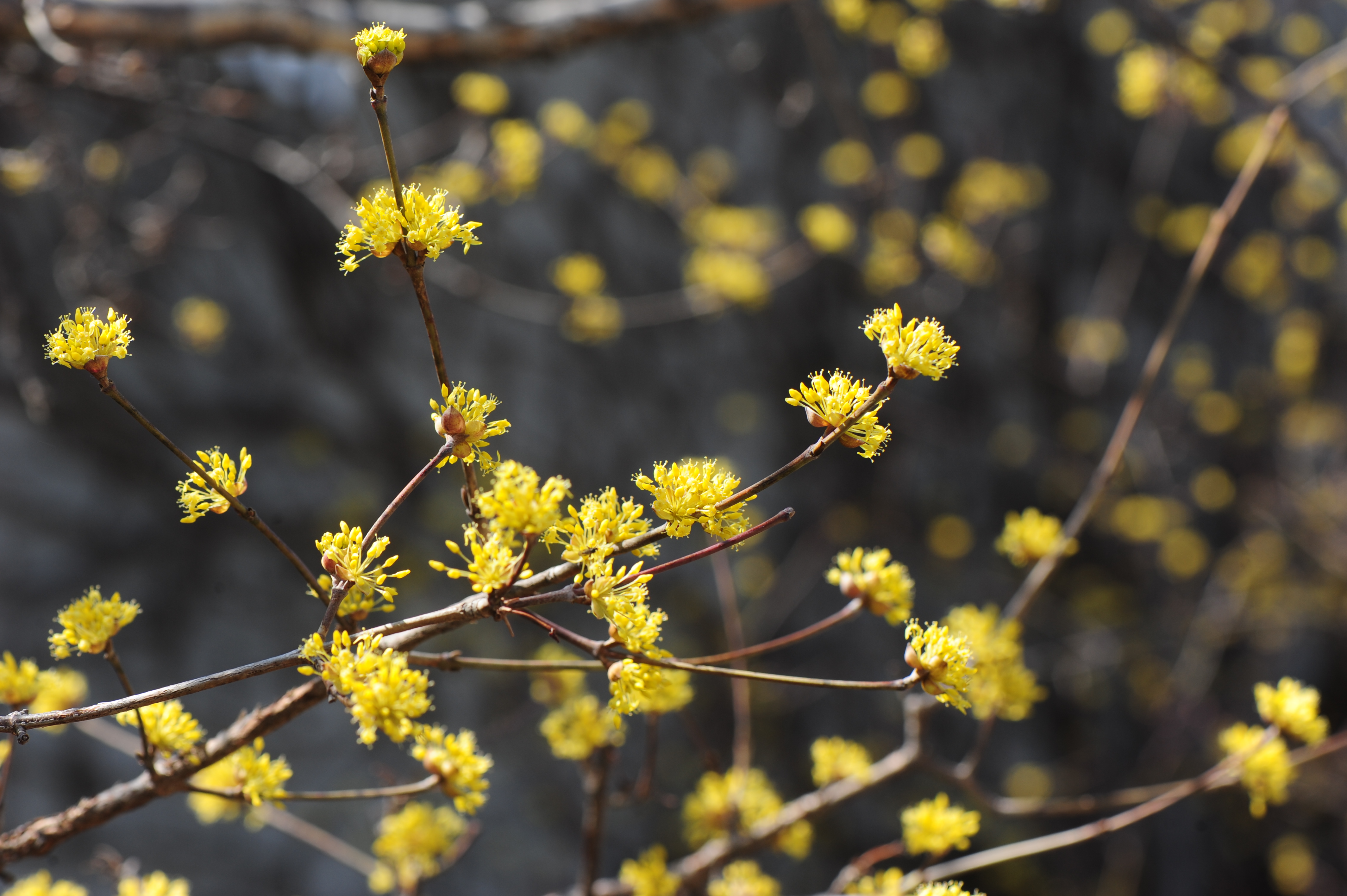 꽃은 3~4월에 잎보다 먼저 피며, 20~30개가 산형꽃차례를 이루고, 지름 4~5mm, 노란색(황금색)이다. 꽃자루는 가늘고, 길이 1cm쯤, 털이 난다.